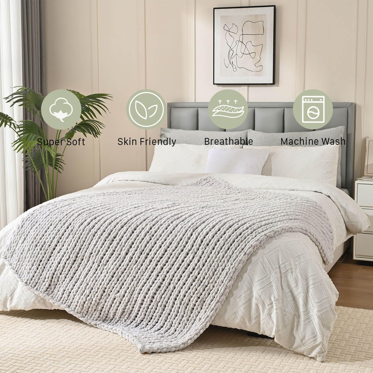 Esterra Chunky Knit Blanket Throw 50"x60", 100% Hand Knitted Chenille Throw Blanket, Cozy Soft Thick Cable Knit Throw Large Rope Knot Crochet Throw Blanket for Sofa Couch Bed, Light Gray