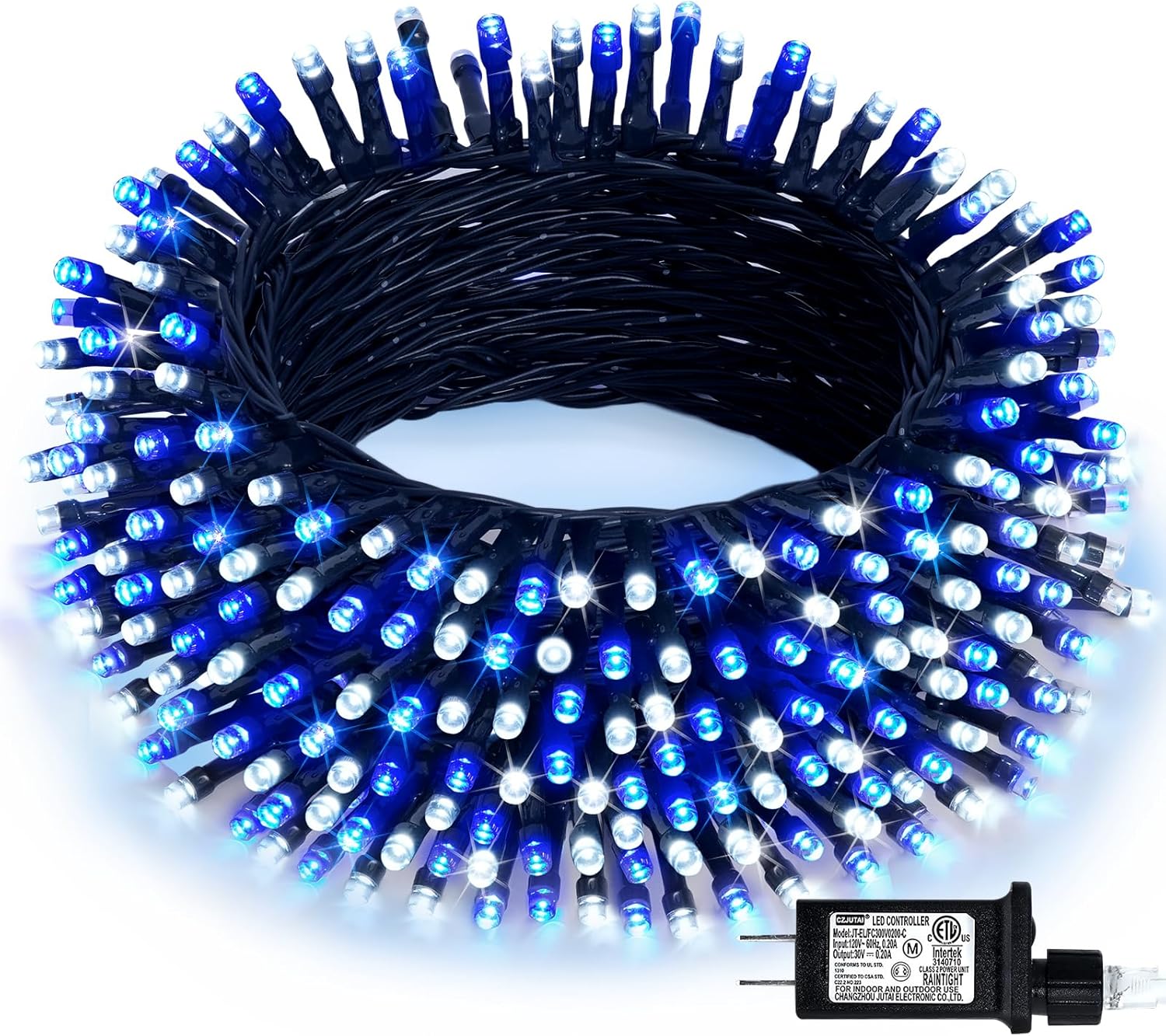 JMEXSUSS 66ft 200 LED Blue and White Christmas Lights, Outdoor Christmas String Lights Plug in, Expandable Christmas Lights for Tree Outside Party Home Decorations, EXS-S-0200
