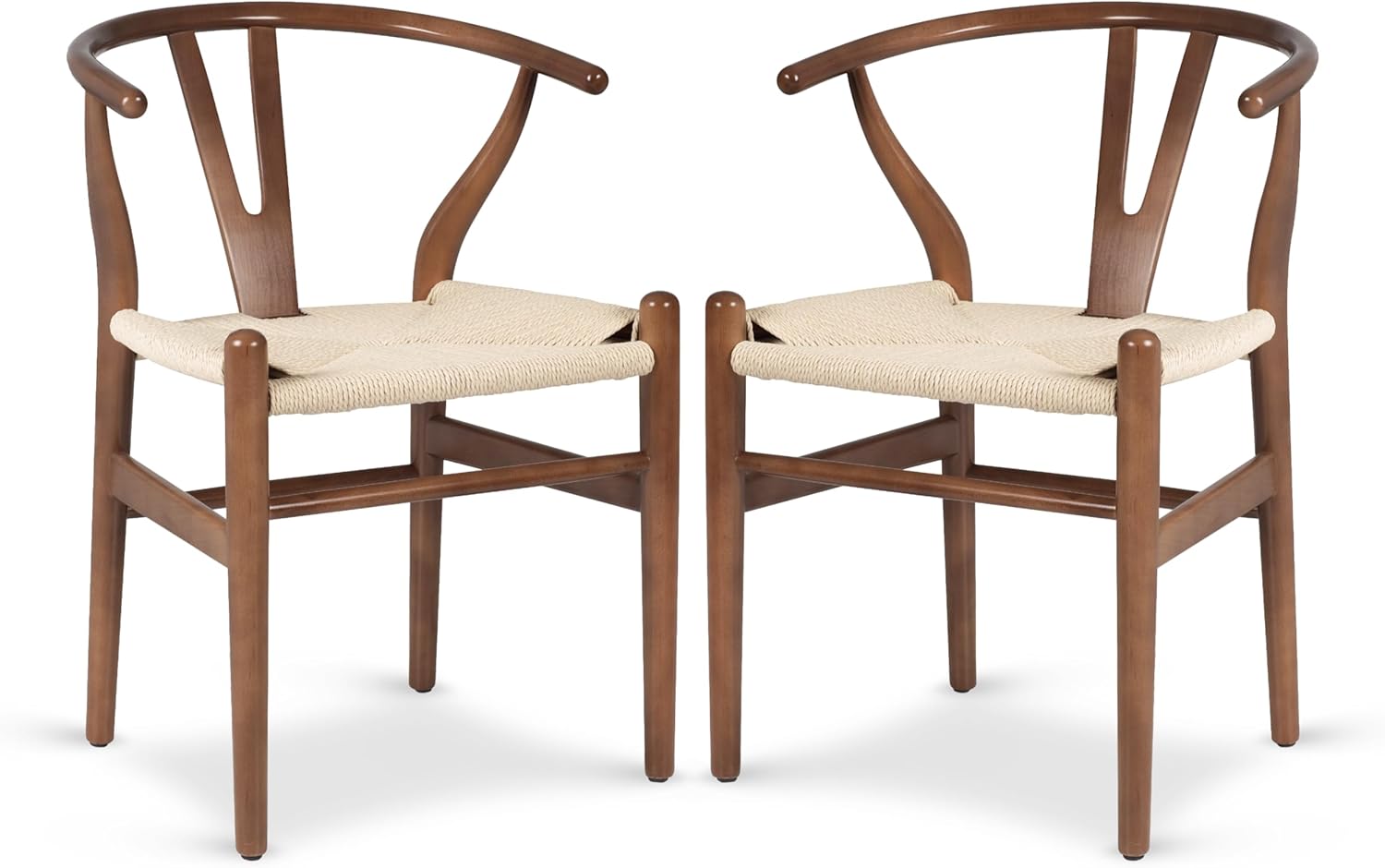 POLY & BARK Weave Dining Chairs – Mid-Century Modern Wishbone Dining Chairs with Arms, Solid Wood Frame, Indoor Use – Walnut– Set of 2 - Ideal for Dining Room, Kitchen or Stylish Accent Setting