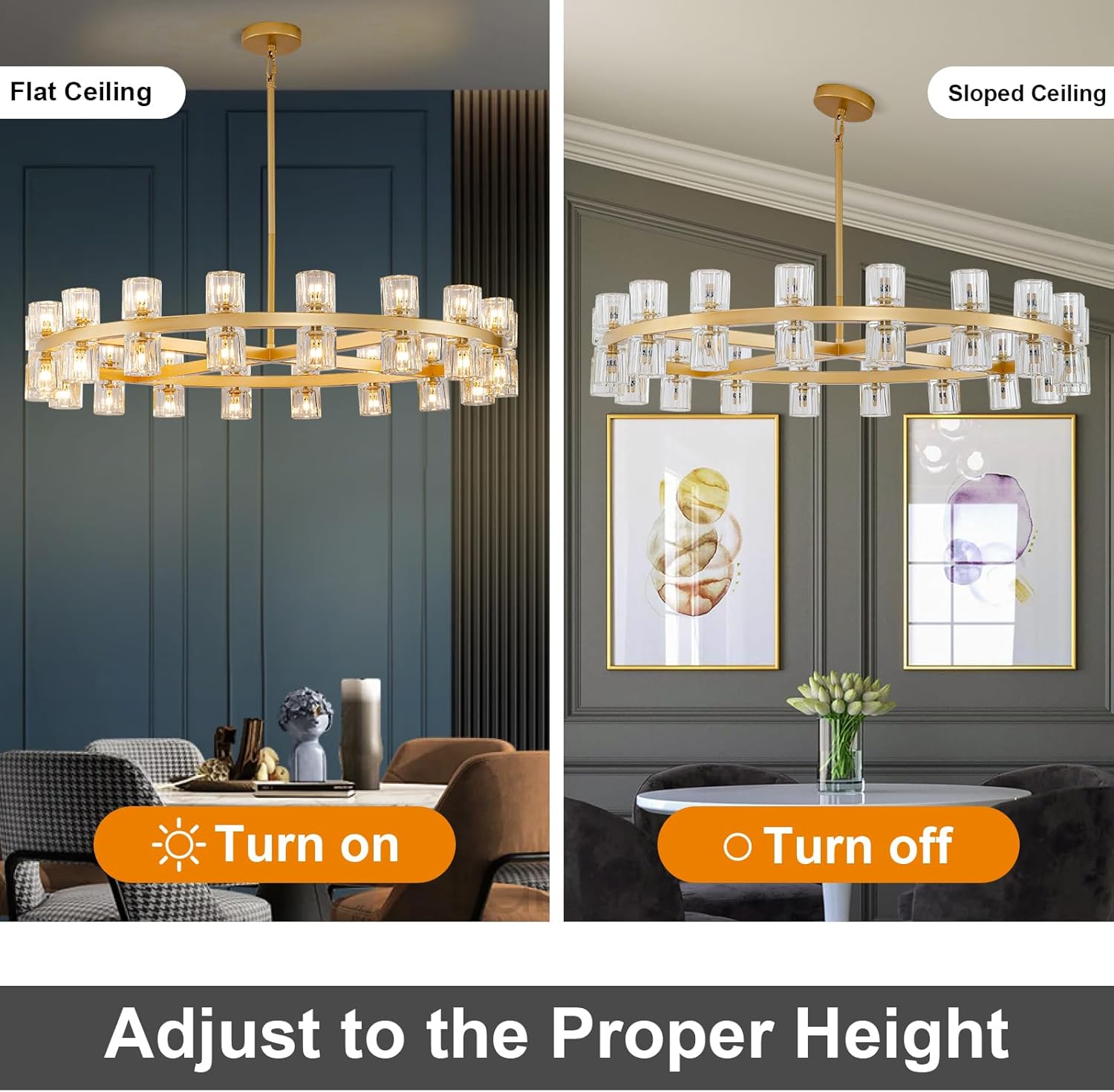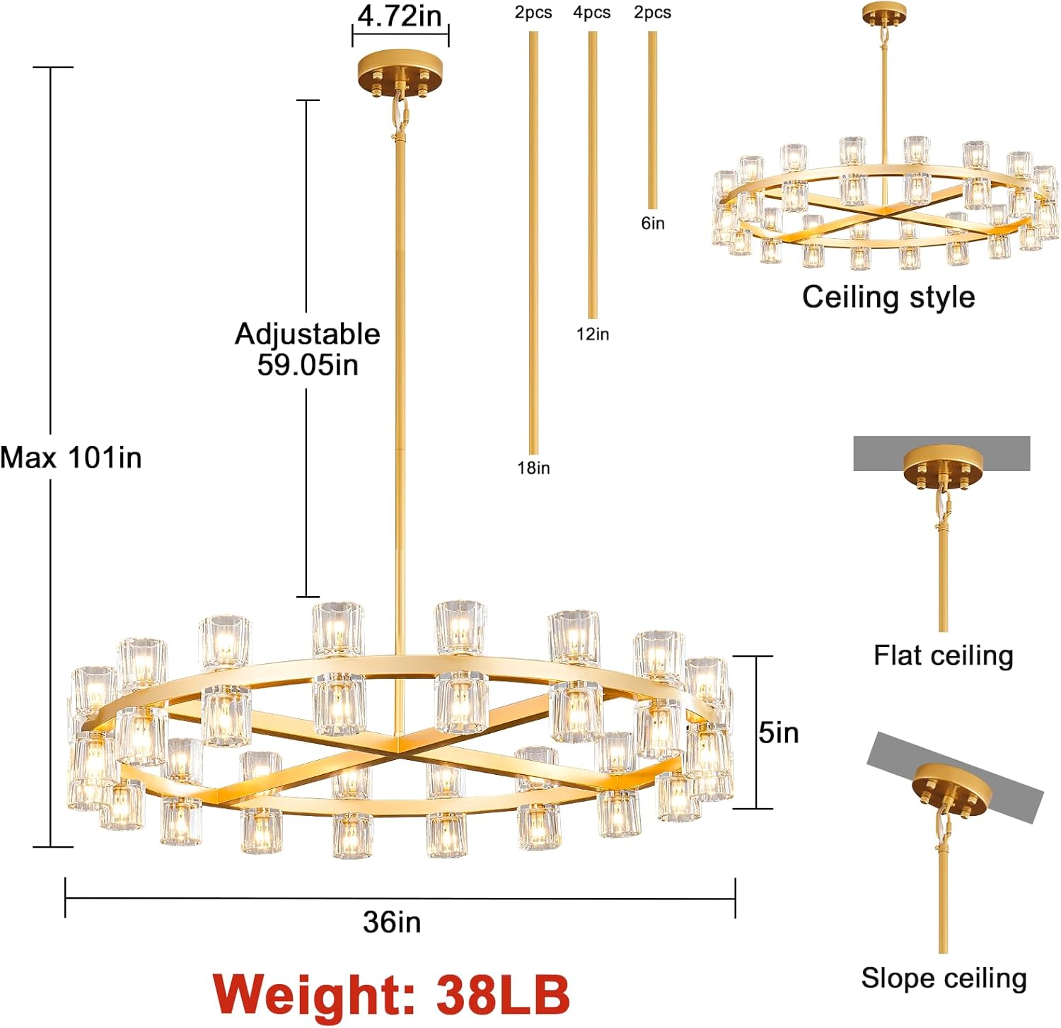 Modern 36" Gold Round Chandelier Light Fixture, K9 Crystal Chandeliers for Dining Room, Living Room, Dining Room Chandeliers Over Table, Chandelier for Bedroom, Foyer, Includes 36XG4 Bulbs
