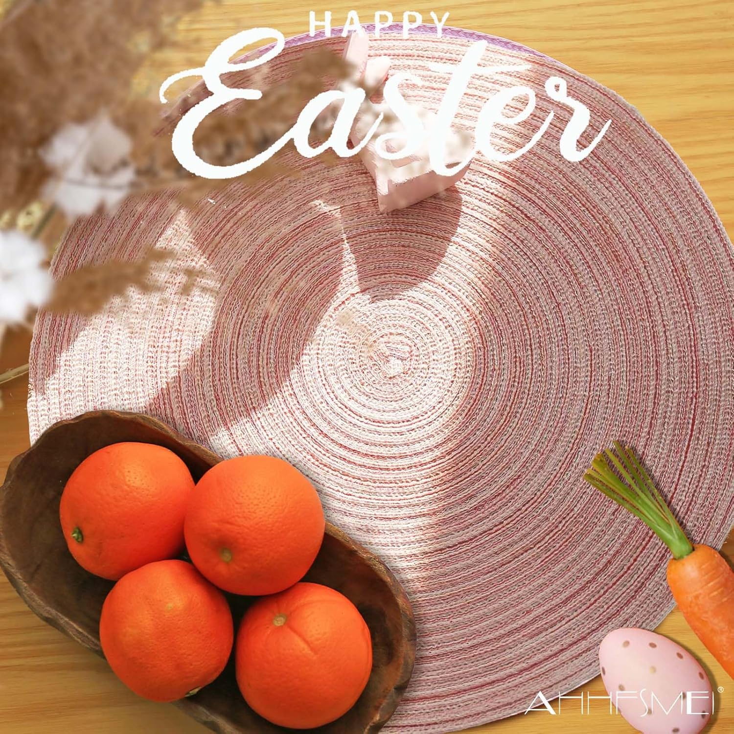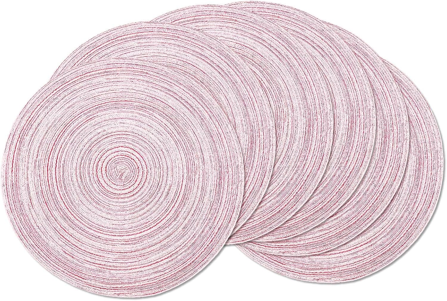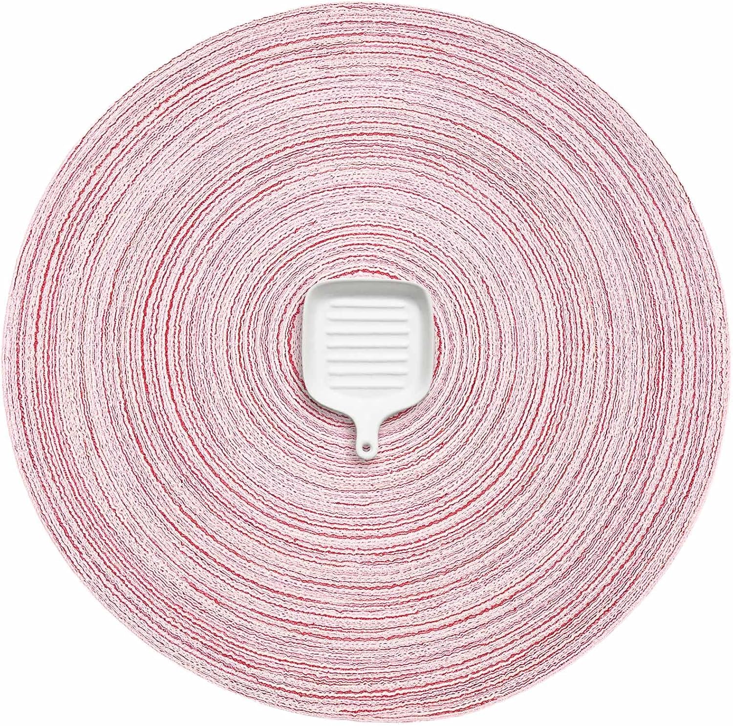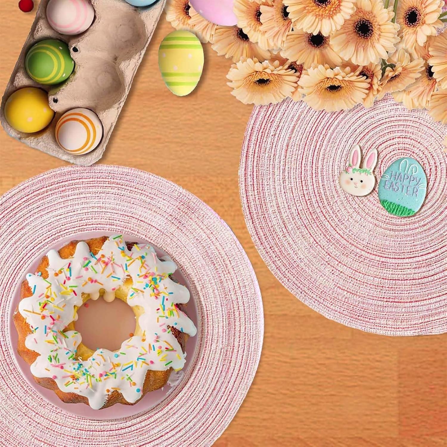 AHHFSMEI Round Braided Placemats Set of 6 Round Table Mats for Dining Tables Natural Woven Heat Resistant Place mats 15 Inch (Pink, 6)