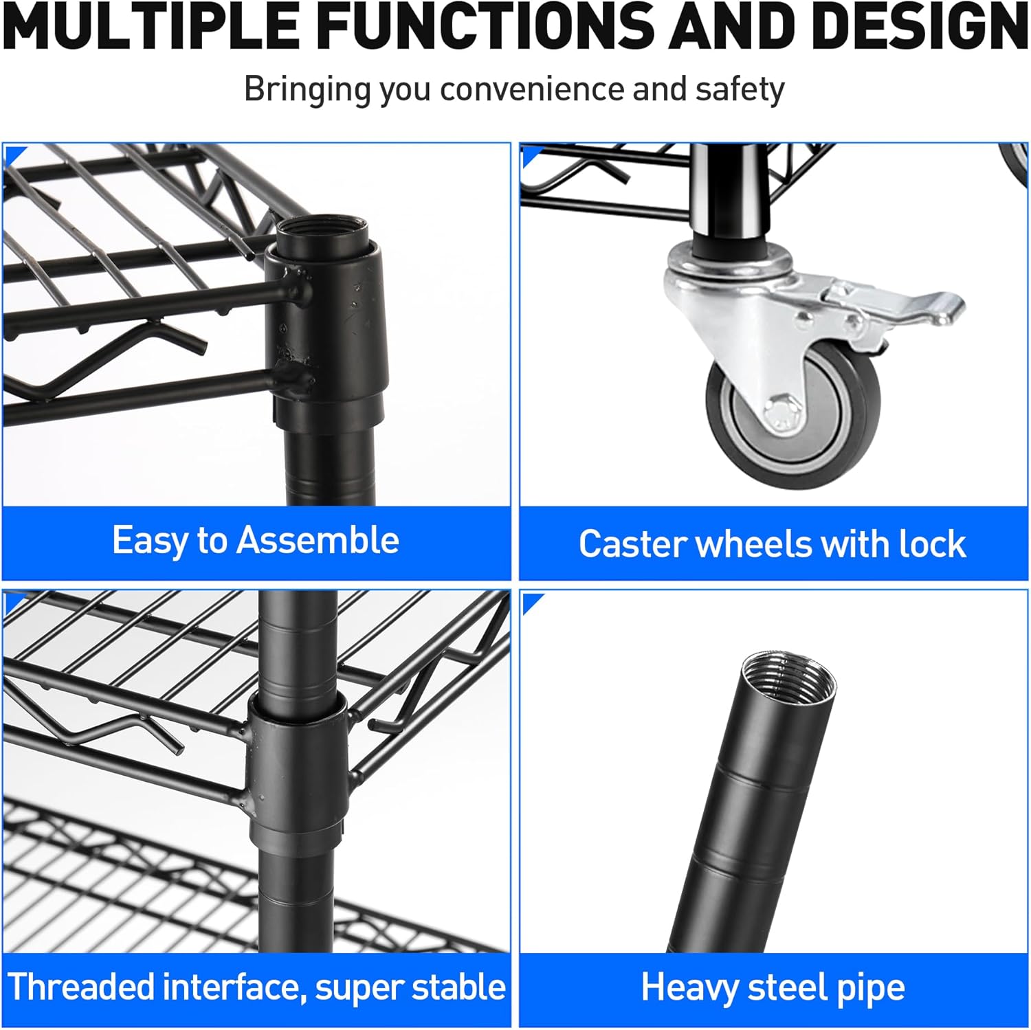 - Adjustable Shelves: The wire storage shelves are designed with height adjustable, you can adjust the height of the storage shelf according to the size of the items. It offers custom units best suited to your own needs. The wire shelving unit has shelf height adjustable in 1" increments