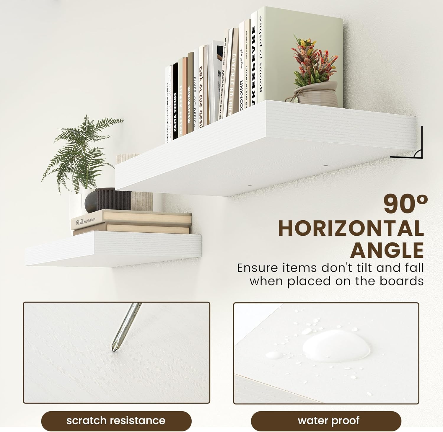 - EASY TO INSTALL - Come with all the installation hardware you need. We have a smart installation design. Thicken metal brackets help boards to be stable and load-bearing, vertical to the wall, and not sagging. The shelves have pre-drilled holes in the bottom to allow screws to secure the boards to the brackets to prevent them from slipping