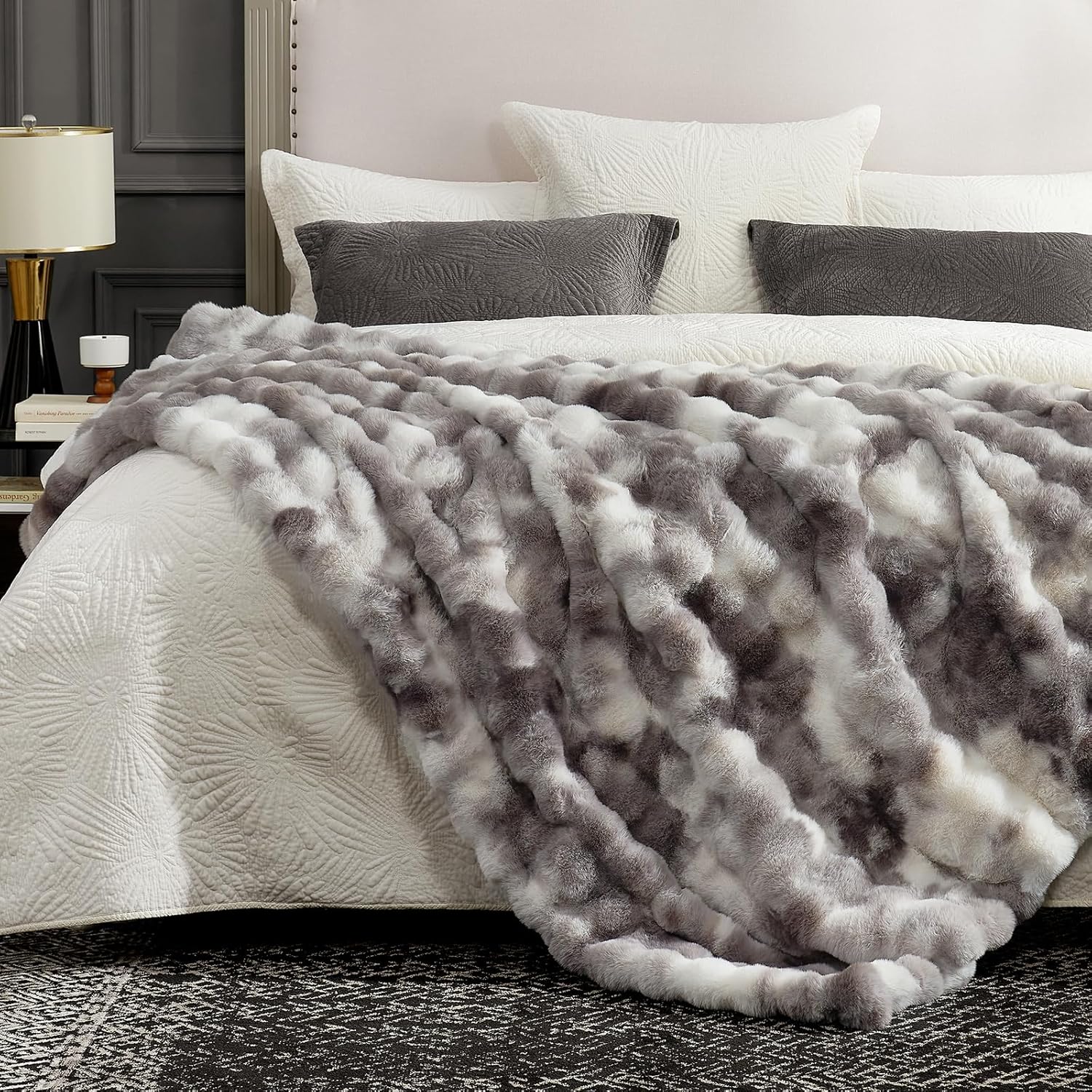 - Experience ultimate comfort and warmth with our Bubble Shape Faux Fur Throw Blanket. Made with 630GSM fluffy faux rabbit fur face side and silky micromink fleece inside, this throw blanket is ultra soft and cozy on both sides. The selected fabric weight provides the perfect balance of warmth without causing overheating, making it ideal for cold moment.