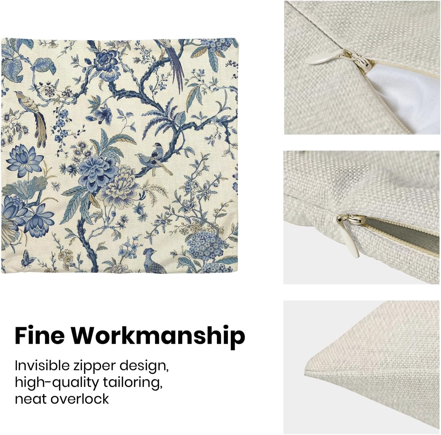 - 【Square Pillow Covers Size】 Chinoiserie flower birds pillow case set includes 2 pcs of farmhouse couch pillow covers (NO Pillow). Home decor farmhouse pillow covers measures 18x18 inch/ 45x45 cm. All the dragonfly floral decor throw pillow covers have a hidden zipper. It is easy to insert or remove the pillow core to replace the spring pillowcase. Easy to clean and wash, durable and not easy to damage.