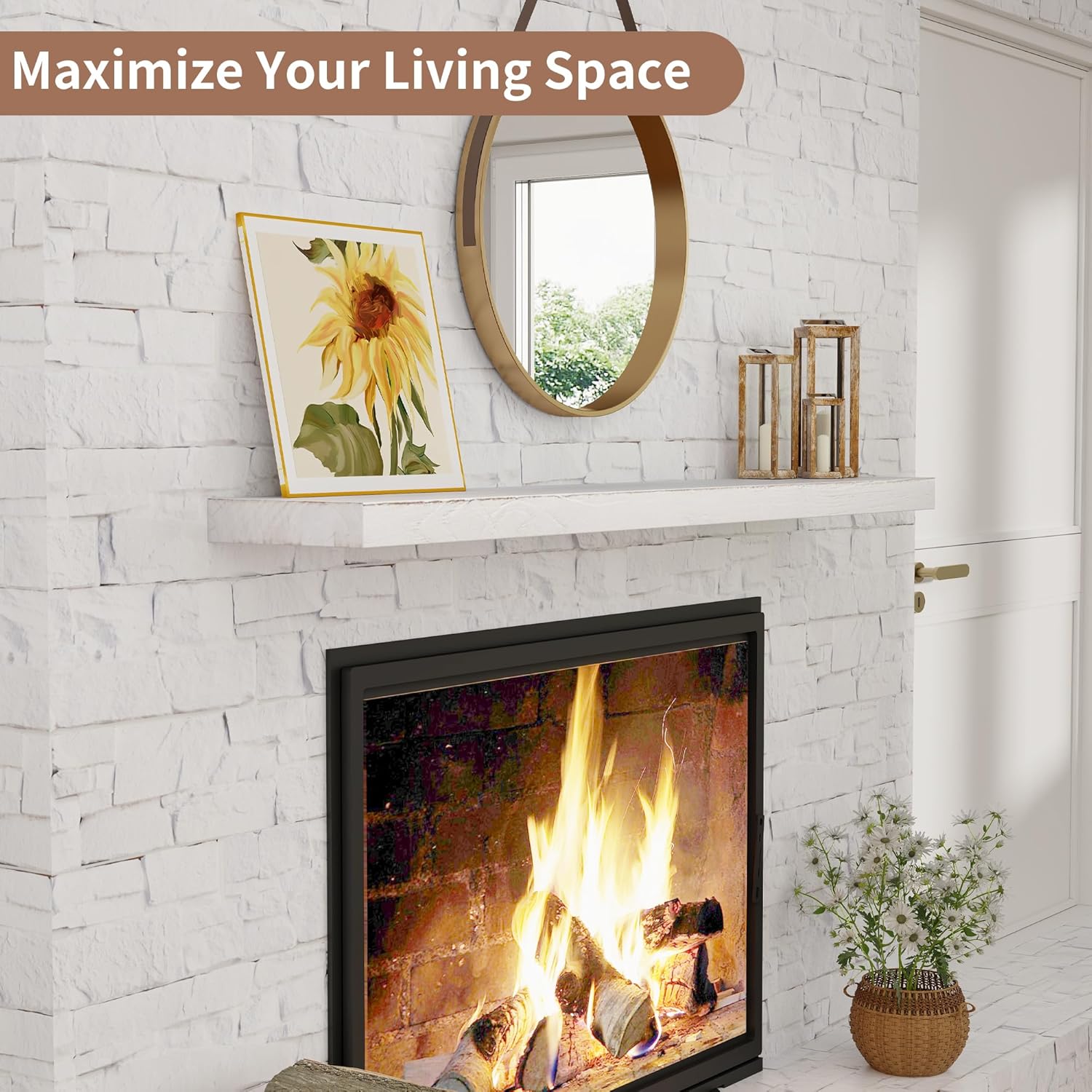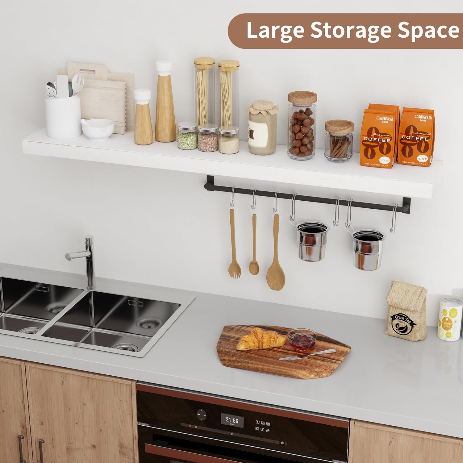 Floating Shelves for Wall, Rustic Elm Wood 56'' W x 8" D Wall Shelf with Invisible Bracket, Large Long Wall Mounted Storage Shelves for Living Room, Bedroom, Kitchen, Bathroom Decor, White Wash