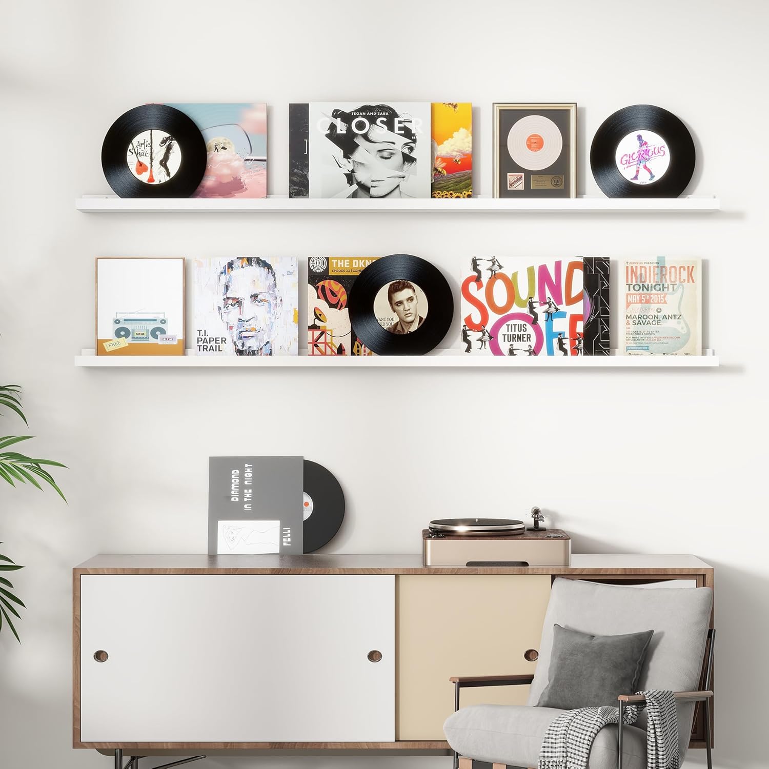 Picture Ledge Shelf, Floating Shelves Set of 2, Solid Pine Wood 72'' Long Large Nursery Book Shelves for Toys Storage, Kids Bookshelf for Living Room Bedroom Decor Books Photo Frames, White