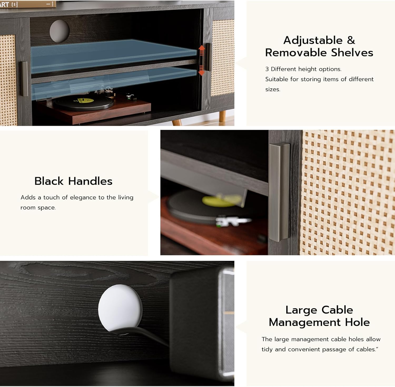 - TV COMPANION: Rattan-decorated doors match the natural surface, this TV stand with storage blends modern and boho style. If your living room is calling for a new upgrade with storage, this TV stand is a great addition