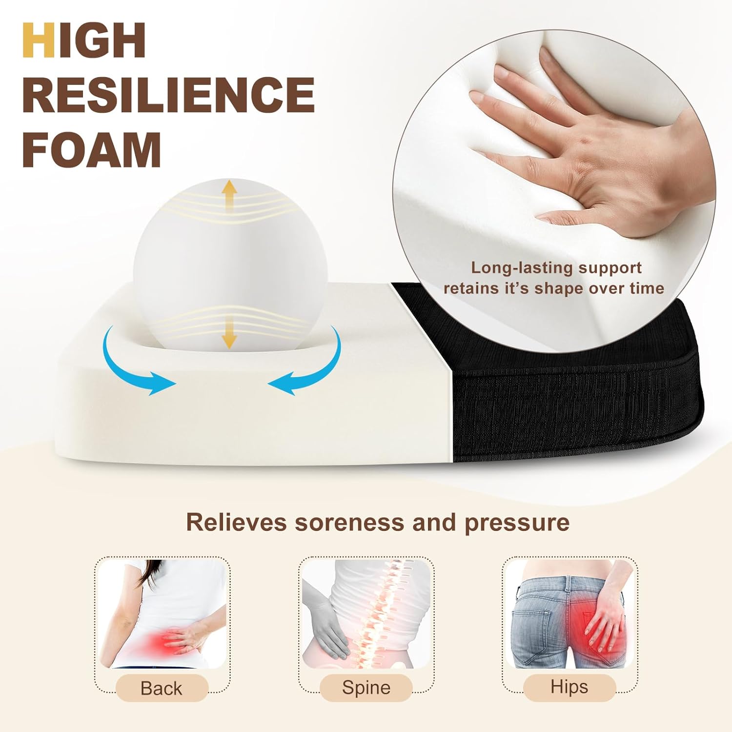 - Highly Supportive Foam Filler: Made with premium high-density foam, this dining chair cushion rebounds quickly for superior comfort, reducing discomfort even when sitting on hard chairs. It maintains its shape over time for long-lasting use