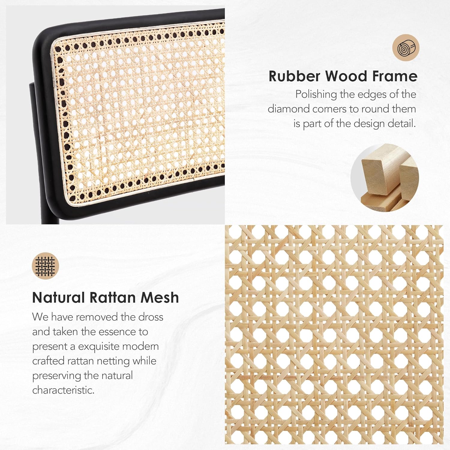 Natural Rattan Dining Chairs Set of 2, Modern Kitchen Chairs with Solid Wood Back, Upholstered Cesca Side Chairs with Comfy Linen Cushion