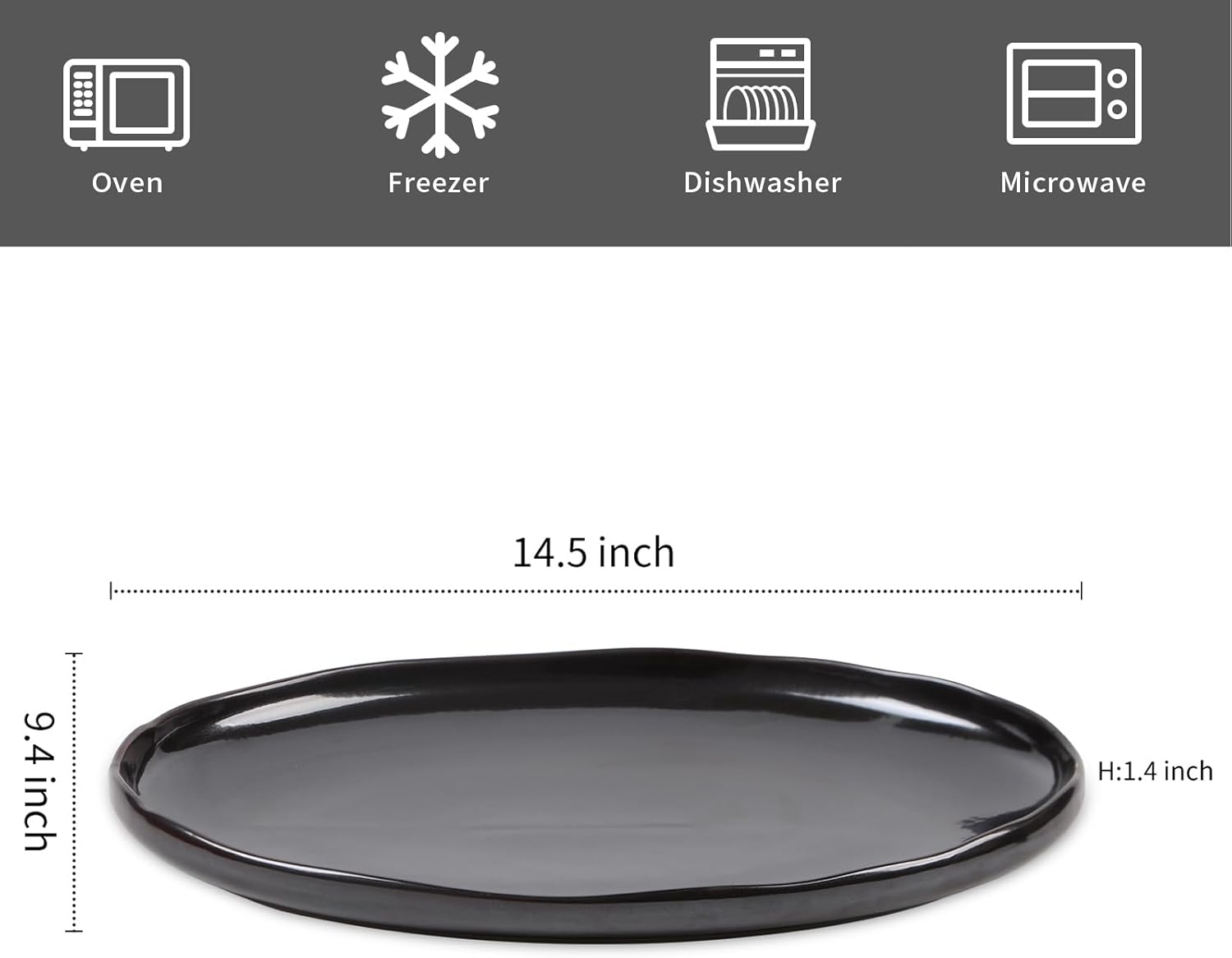 - UNIQUE NATURAL GLAZED: The glazed ceramic serving platter are durable, LEAD-FREE and Eco-friendly, ideal in the kitchen for everyday use, easy to clean with dishwasher or even hand wash with soap and water