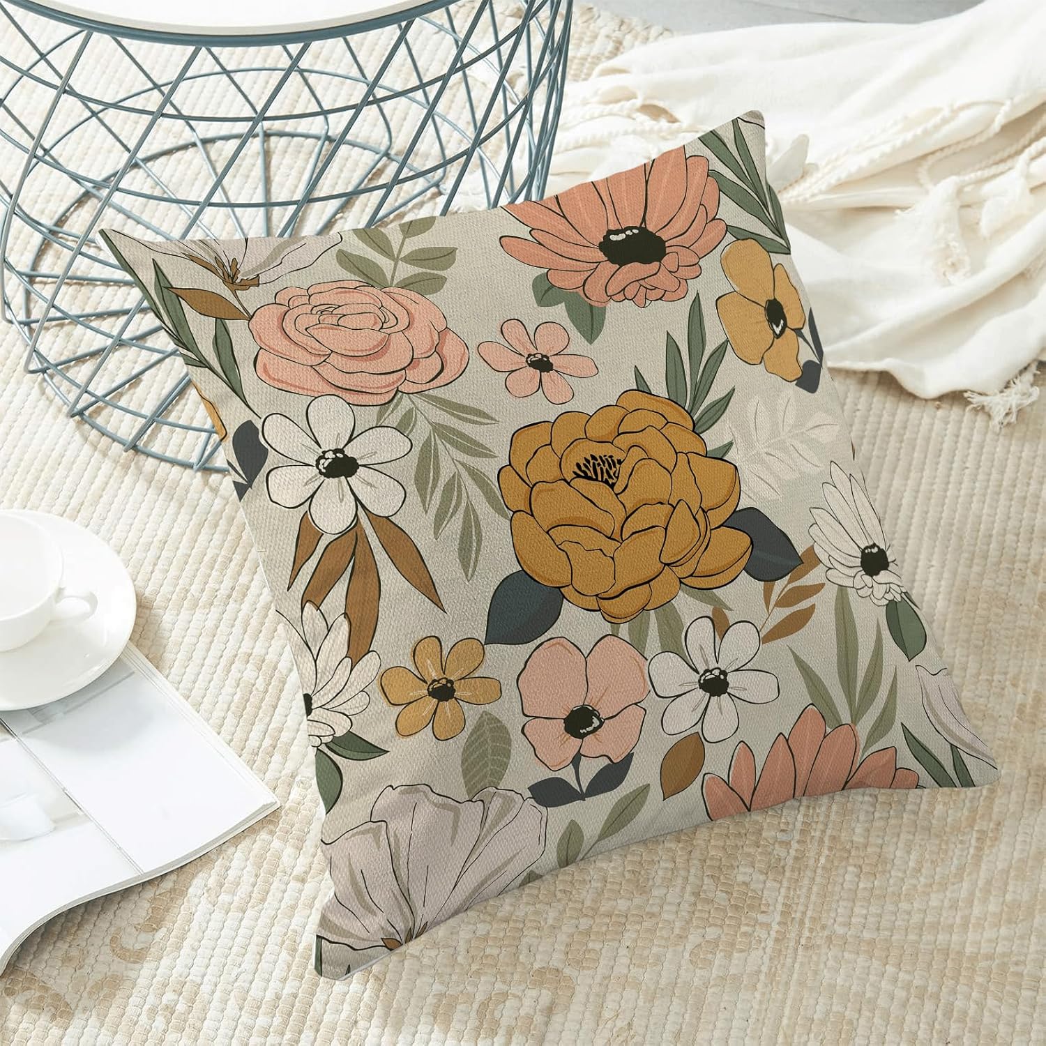 - 【Spring Pillow Covers】 Our floral throw pillow covers 20x20 inch are made of excellent breathable polyester linen fabric. The cream decorative pillow covers is durable, soft and skin-friendly. The plant outdoor pillow covers adopt exquisite edging technology and four sides of our floral pillow covers are sewn firmly, which is not easy to open the line.