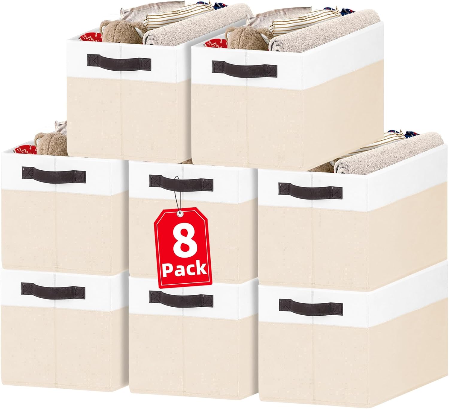 - 【FIT RANGE】 Comes with 8 pack for better value, these cloth storage bins could meet all your family storage needs, also for college dorm, RV, school, baby nursery. Measuring 14” (L) x 10” (W) x 9.5” (H), they could work as storage baskets for shelves, closet storage bins, shelf bins, under bed storage bins, or for changing tables.