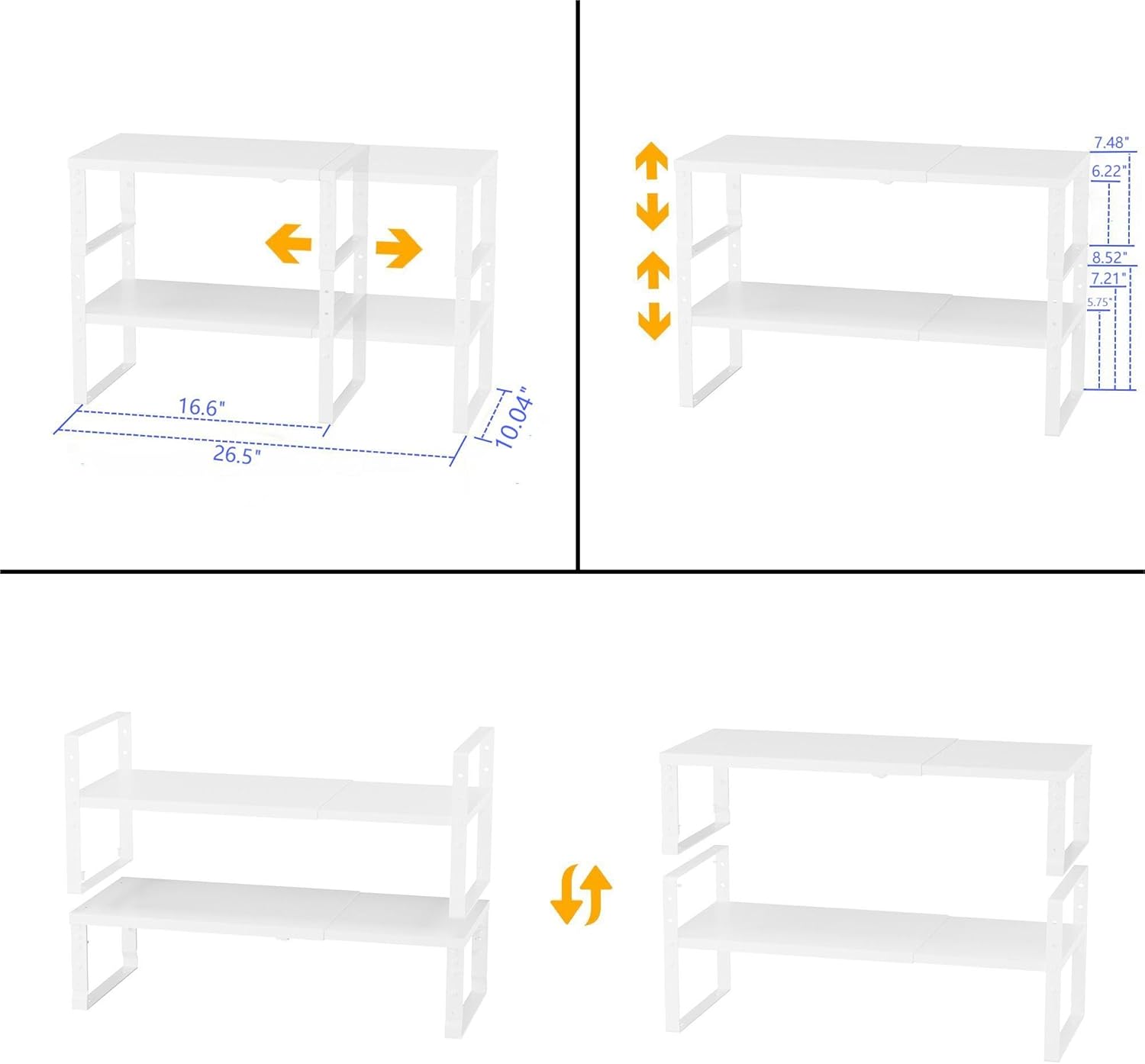 - ⭐【Expandable,Stackable】Compare with other spice rack, our products has expandable length (10.04" D x 16.6~26.5" W x 5.75~8.52"H)depending on how you want to arrange your space. You can use it alone or get more packs to stack them together to create more space.