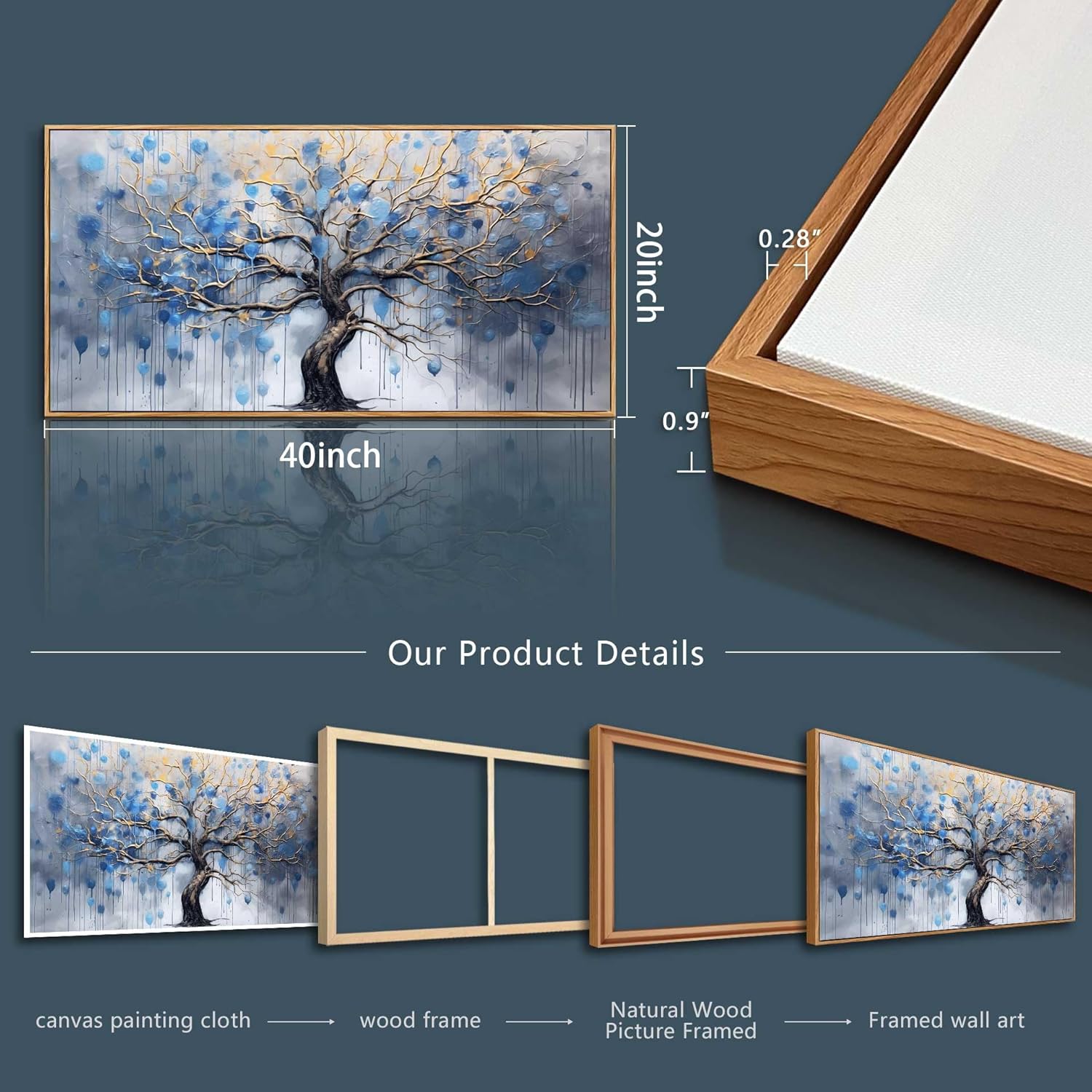 - 【FRAMED CANVAS WALL ART SIZE】Size Is :20x40inch (50x100cm)(Including The Outer Frame), total 1 Panel. Framed Wall Decor Art Wood Frame wall art.