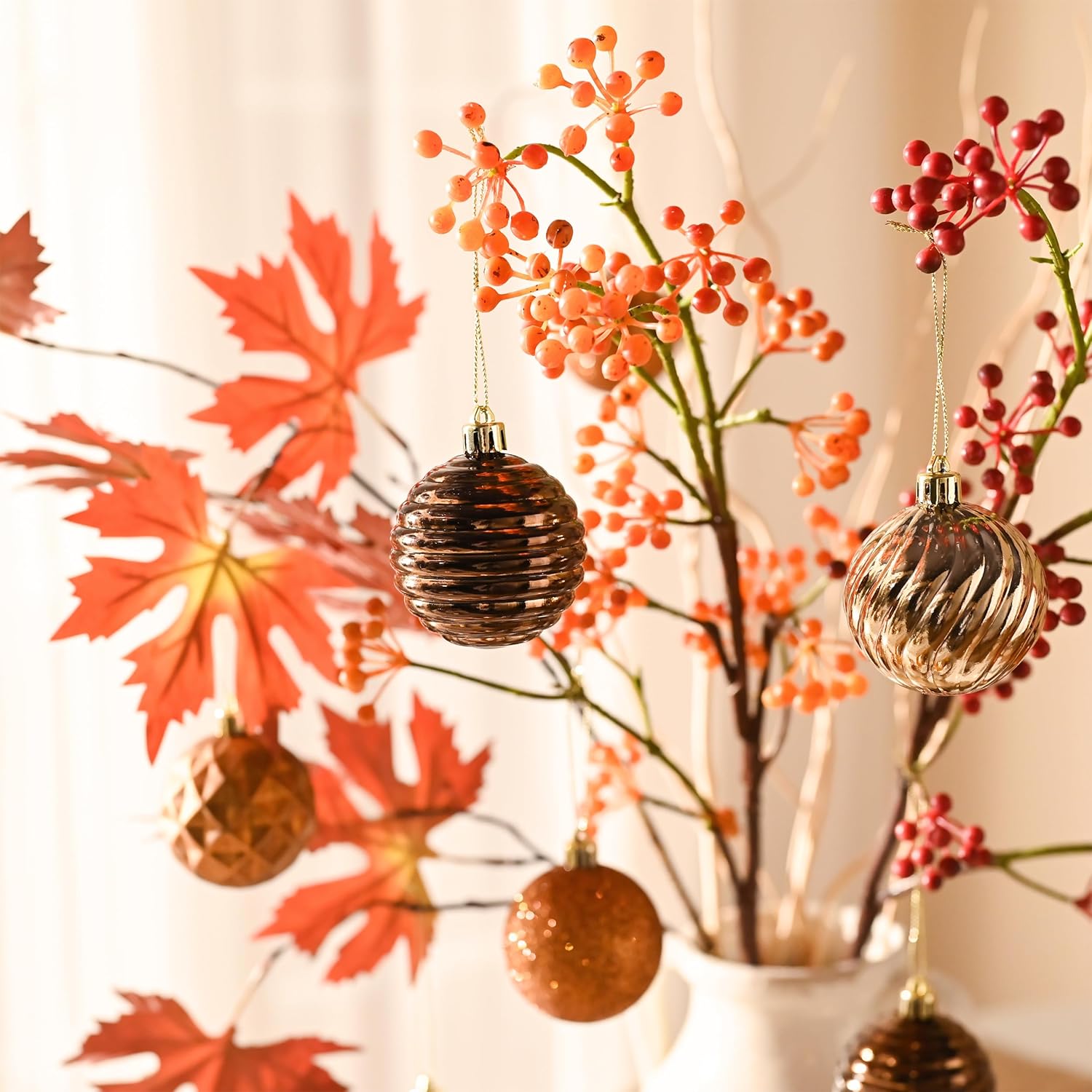 - 【Versatile Function】Beyond Fall season, these ornaments are perfect for DIY projects, table centerpieces, tiered tray, glass vase, banner, wreaths, and garlands, adding a creative touch to your home decor