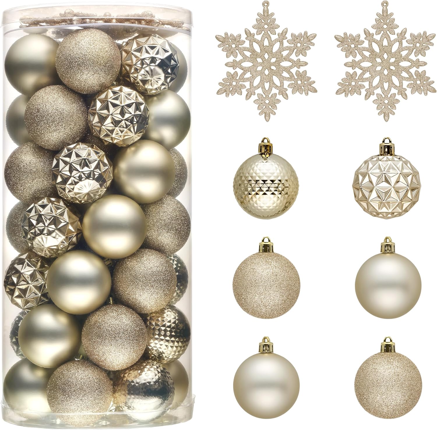 Valery Madelyn Christmas Tree Decorations Ornament Set for Fall Halloween, 50ct 2.36 Inches Champagne Shatterproof Christmas Ball Ornaments Hanging Xmas Holiday Party Decor