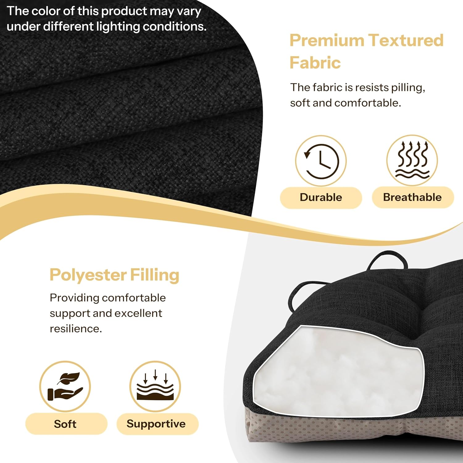 Non Slip Chair Cushions for Dining Chairs Set of 4 Kitchen Chair Cushions 18"x18"x3" Turfted Chair Pads Comfortable and Soft Seat Cushion with Ties, Black