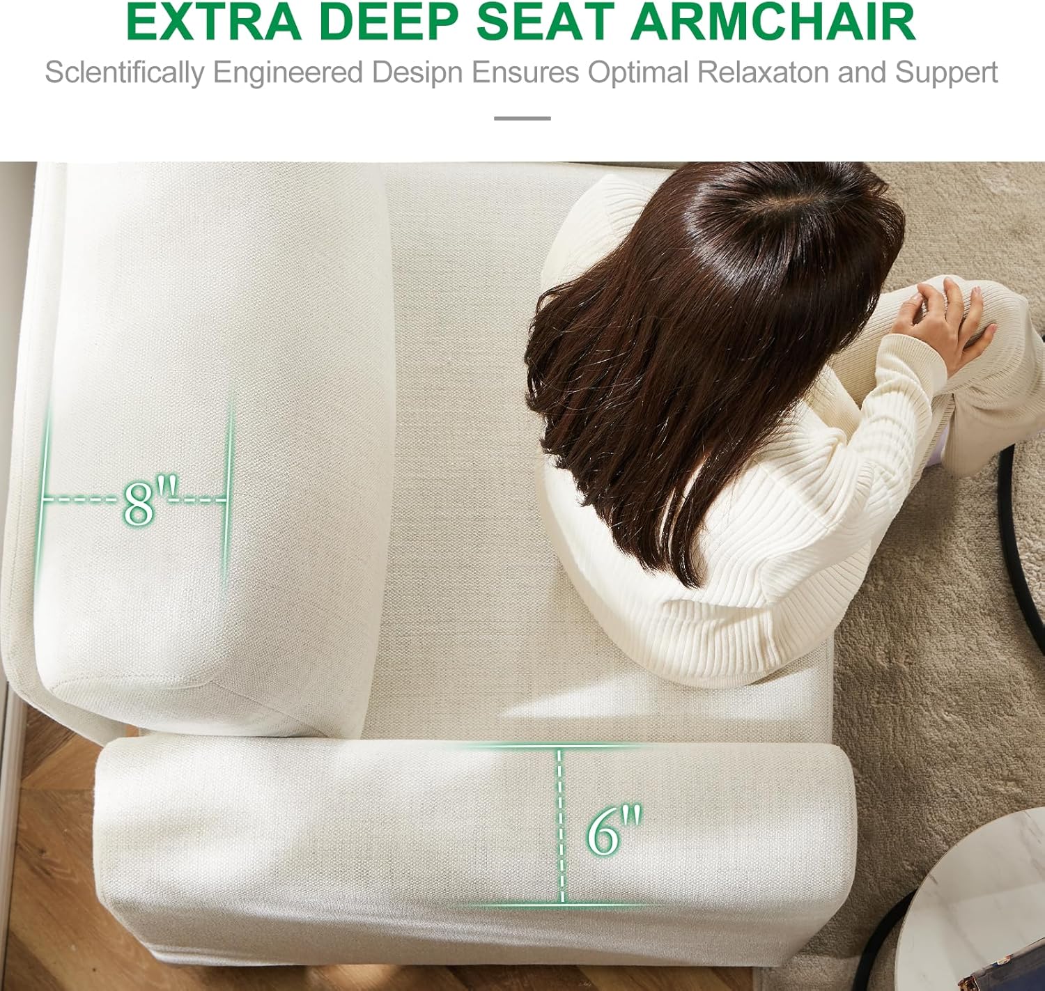38.5 Oversized Accent Chair with Storage Beige Set of 2, Single Modern Accent Sofa Chair with Arms for Apartment Living Room Linen(21" Deep Seat)