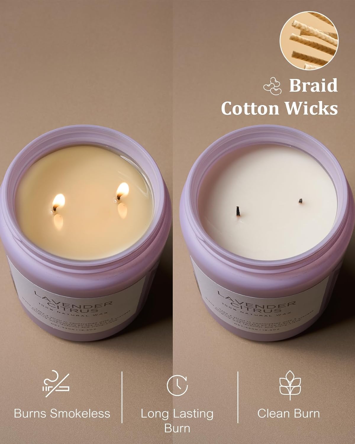 - 🌳 Clean Consistent & Even Burn - Using 2 American made lead-free cotton wicks for a even burn result. They're cotton flat braid wicks with paper throughout, providing increased rigidity and burn more consistently than 100% cotton wicks. Designed to reduce carbon buildup which leads to black soot.