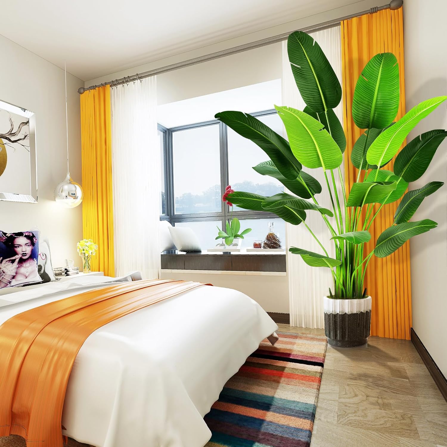 - 【STURDY AND ADJUSTABLE】 Our artificial silk bird of paradise palm tree outfitted with inner metal wires, you can adjust the leaves to the shape you like. This artificial plant will maintain its height, color and shape for years without pruning and shaping to ensure the aesthetic is maintained.