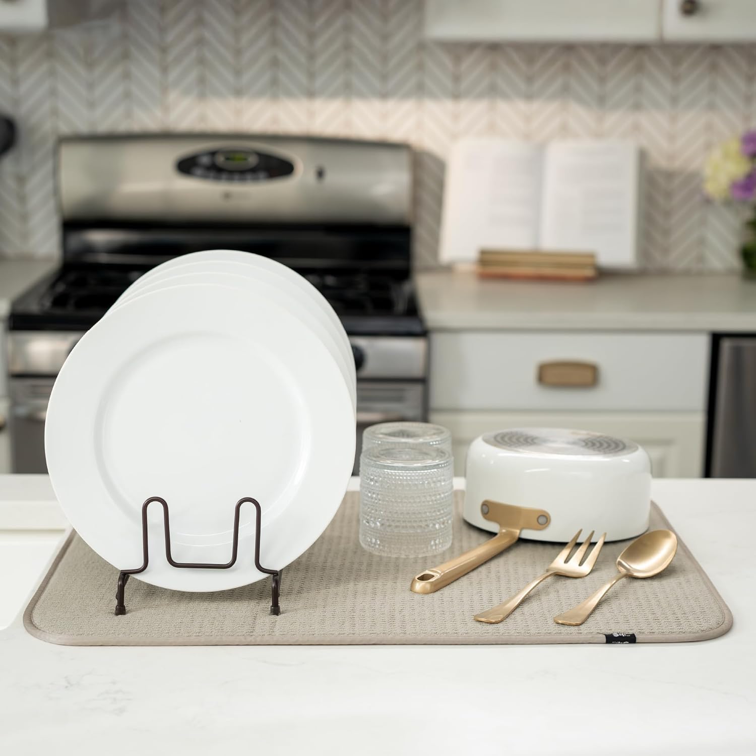 - Dish drying mats for kitchen counter are reusable, machine washable, and easy to store for kitchen organization; durable construction will not chip or break like a stone dish drying mat for kitchen