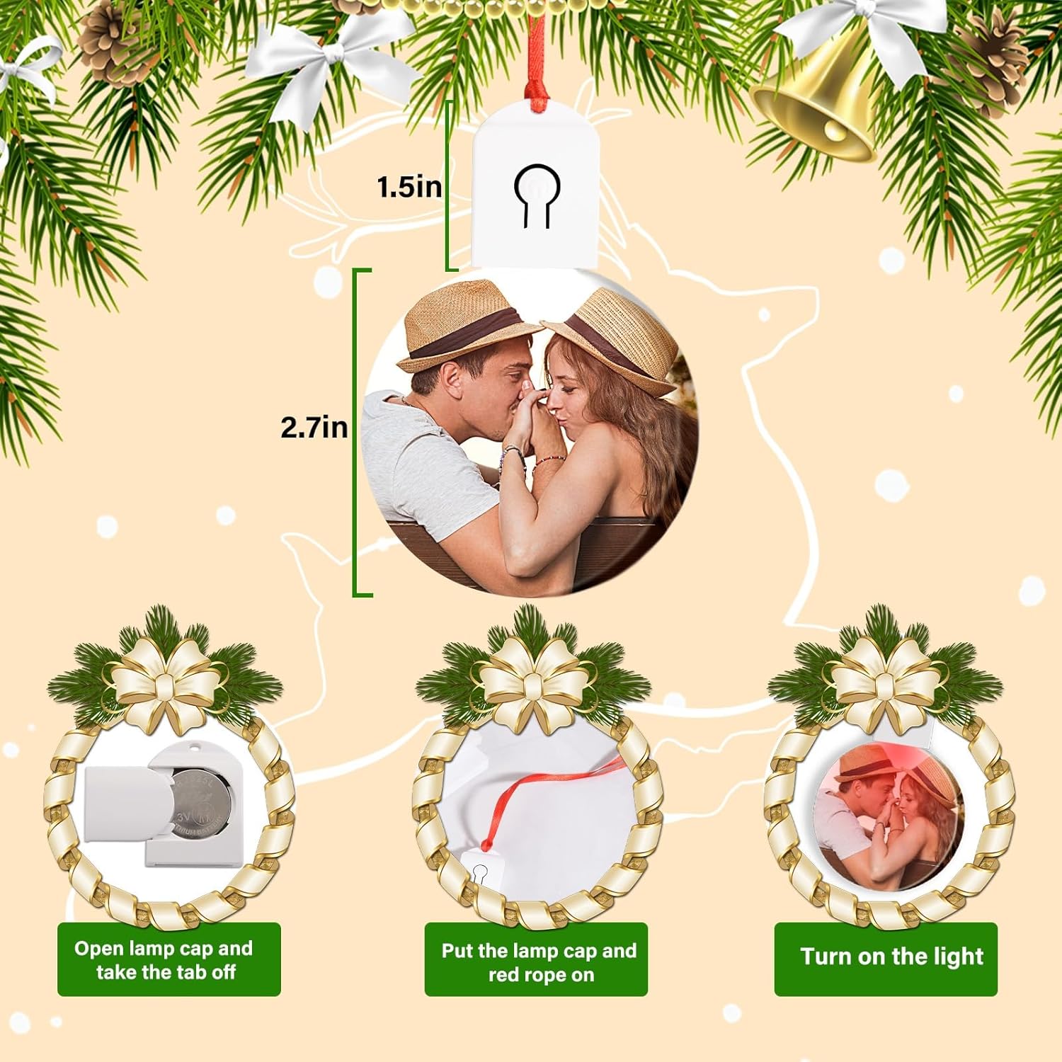 - 【Custom Photo Text Christmas Ornaments】Click on the " Customize Now " button to design your own Christmas ornament special with desired Photo, Picture, Logo, Text. Simply upload any photo, fit by the corners. Choose your font color, fill in the optional blank with your text. Our designers will do the rest.