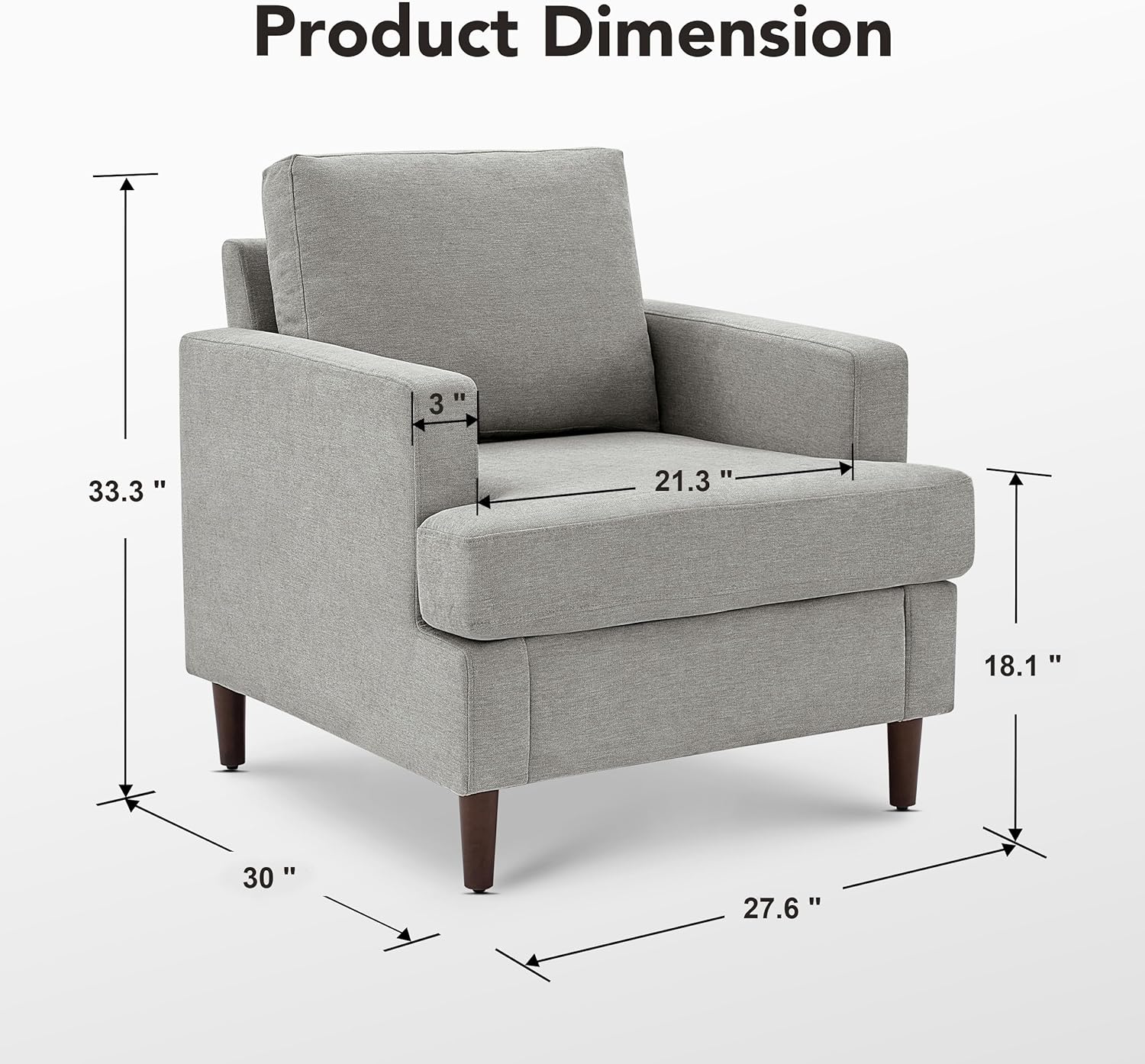 Mid-Century Accent Chair,Modern Linen Fabric Armchair for Living Room,Comfy Upholstered Reading Accent Chairs for Bedroom,Single Sofa Chair with Wood Legs (Light Grey, 2 Pack)
