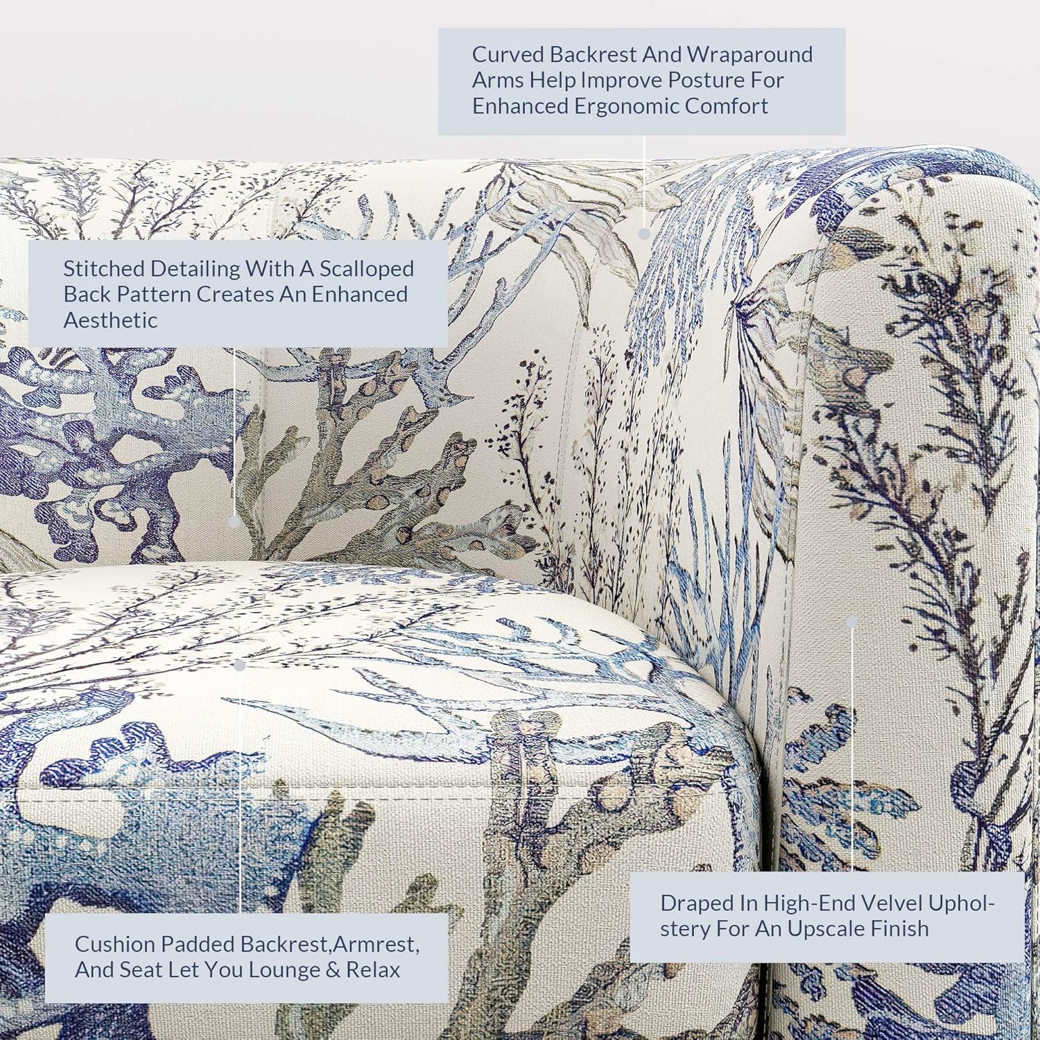 BELLEZE Living Room Chair, Linen Round Accent Barrel Chair, Club Tub Sofa Chair for Bedroom, Corner Chair with Flared Legs and Cozy Soft Padding - Highland (Blue Coral)