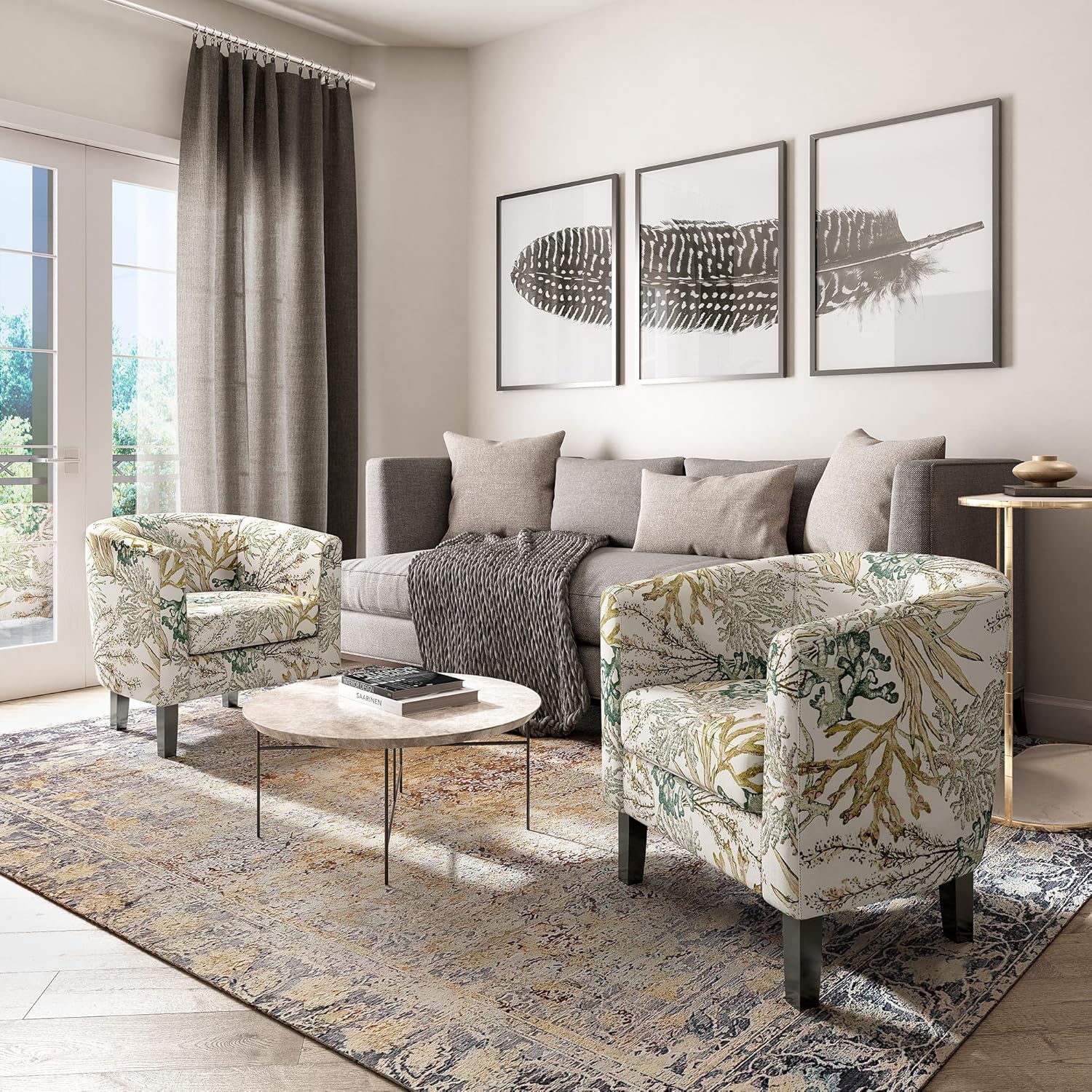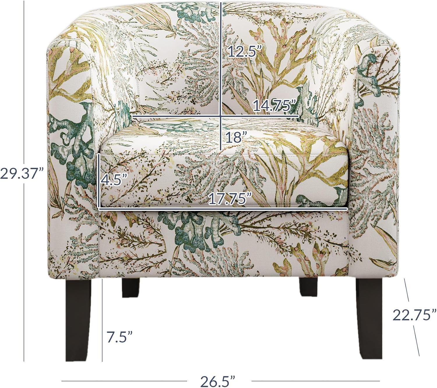 BELLEZE Living Room Chair, Linen Round Accent Barrel Chair, Club Tub Sofa Chair for Bedroom, Corner Chair with Flared Legs and Cozy Soft Padding - Highland (Green Coral)