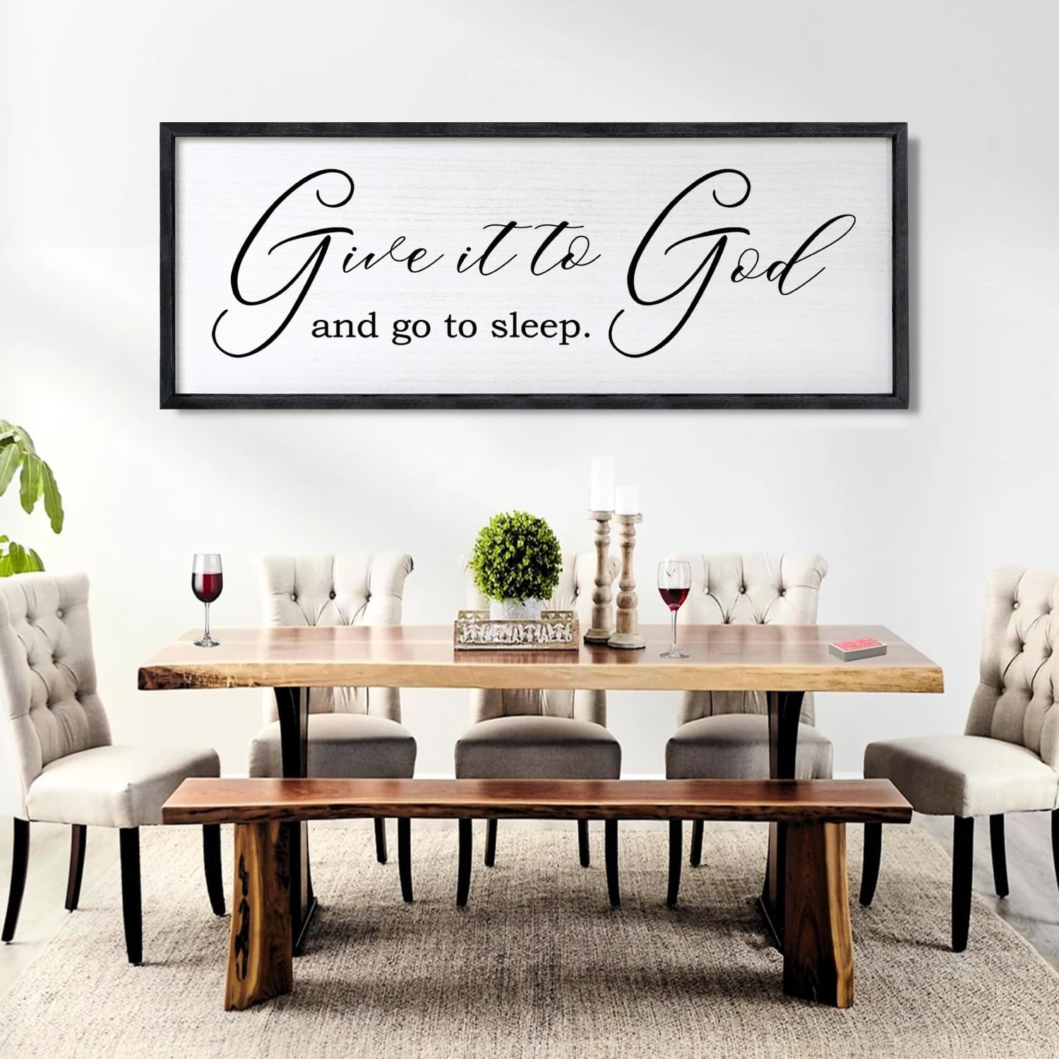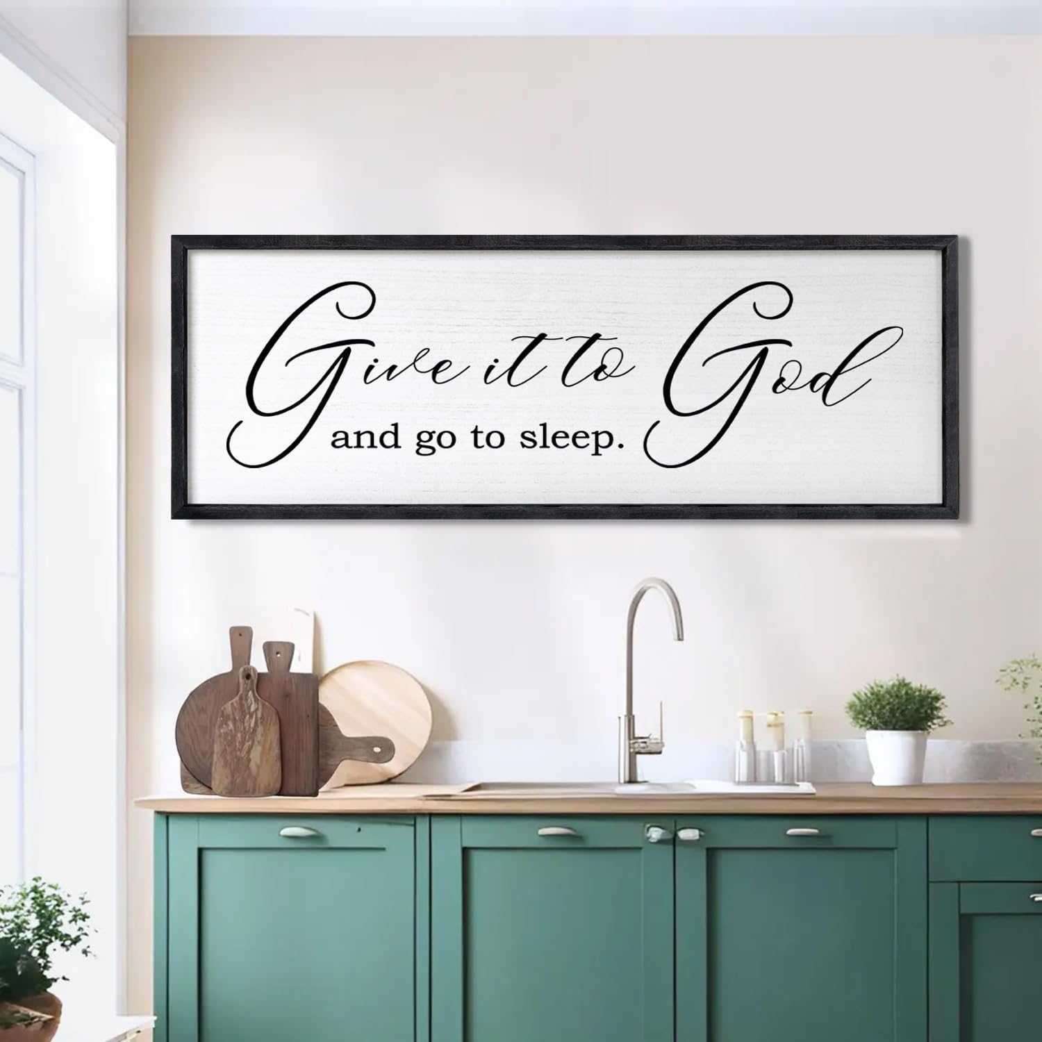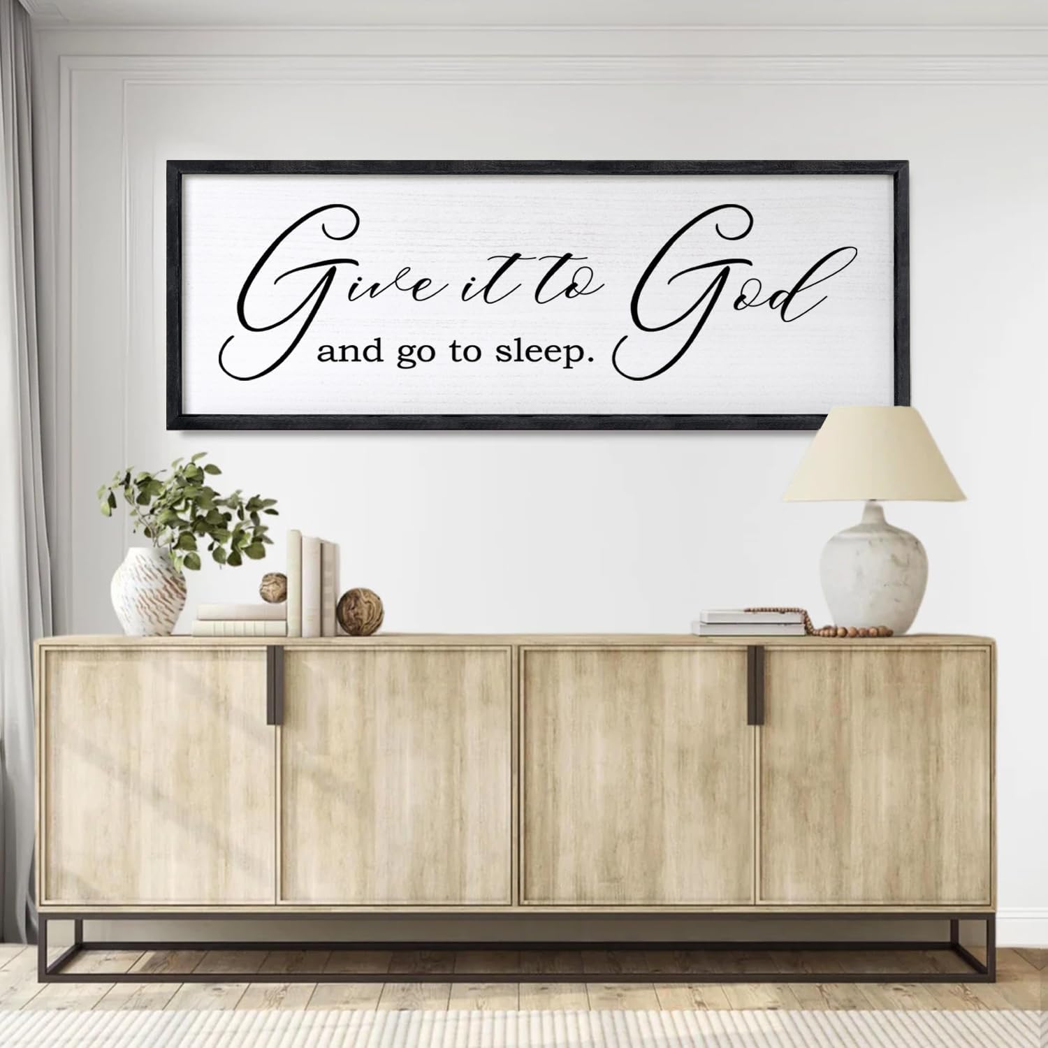Give It To God And Go To Sleep Sign Wall Decor 40x15 Inch Large Farmhouse Master Bedroom Above Bed Hanging Wall Art Rustic Guest Room Wood Framed Over Bed Wall Decoration (Black)