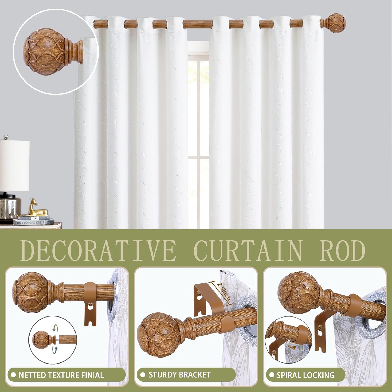 - 2 Pack Easy to Install Curtain Rods: TANGWIN provide detailed illustrated size instructions and modern decorative window curtains rod shipping package has detailed installation instructions inside, follow the steps, 2 pack brown wood curtain rods can easily complete the installation.