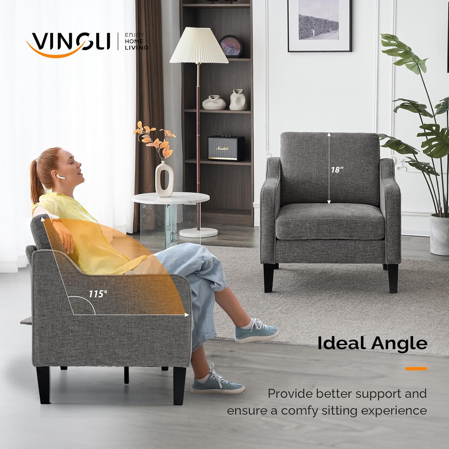 VINGLI Accent Chairs for Living Room Chairs Reading Chair Mid Century Modern Chair Soft Chenille Sofa Chair Upholstered Arm Chair Comfy Chair Side Chair (Light Grey Chenille)