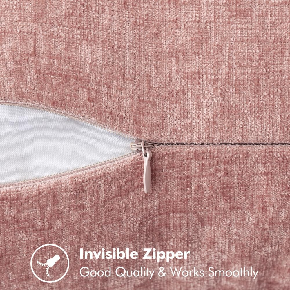 MIULEE Pack of 2 Couch Throw Pillow Covers 18x18 Inch Blush Pink Farmhouse Decorative Pillow Covers with Stitched Edge Soft Chenille Solid Dyed Spring Pillow Covers for Sofa Bed Living Room