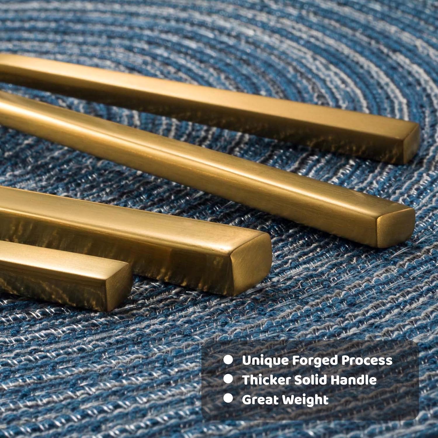 - Dishwasher Safe & Easy to Clean: The matte gold forged flatware set is dishwasher safe and easy to care for and clean in daily use. Crafted forged process, strong and durable, so that the flatware set has a thicker texture