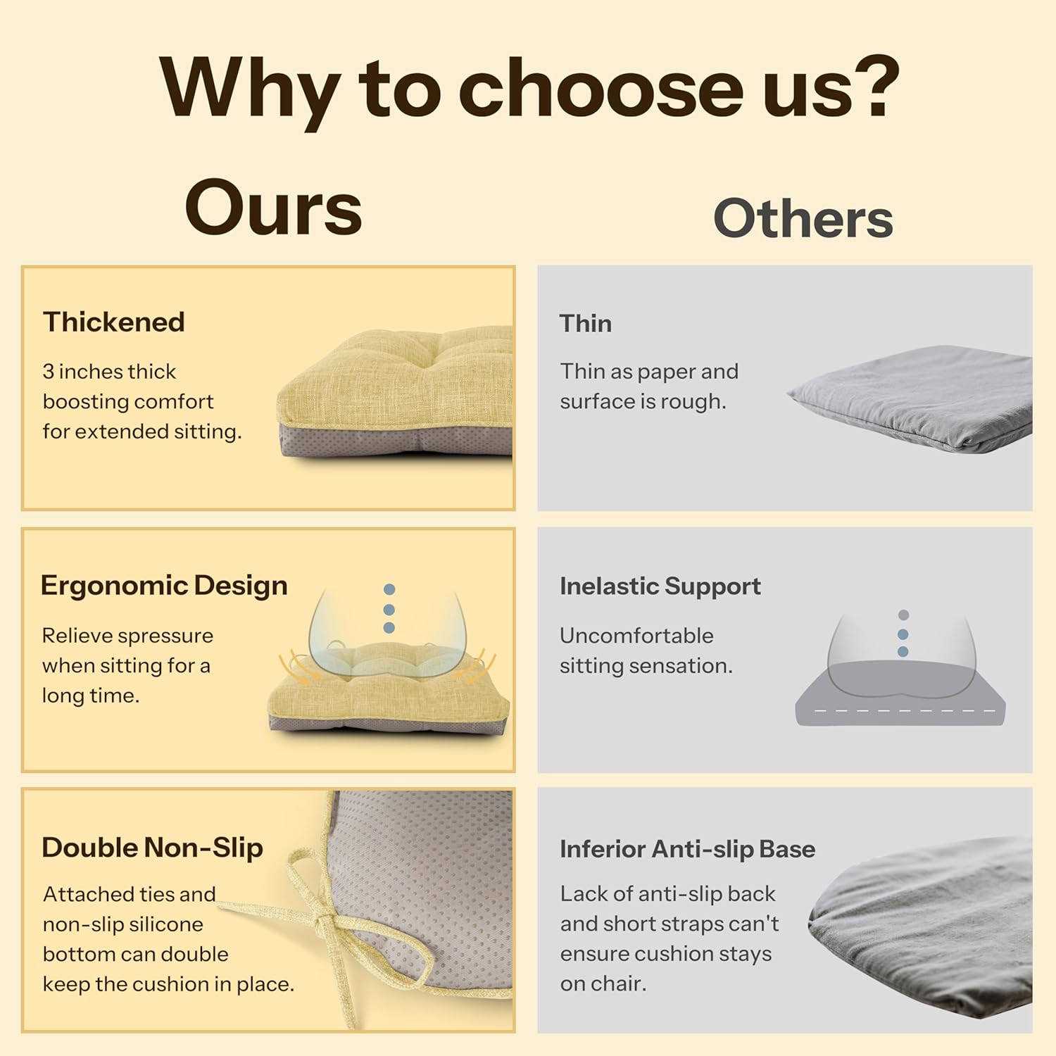 - Versatile Style: Whether you need extra support in the office or want to add a touch of style to your home, our seat cushions for dining chairs are the perfect solution. Use it in dining rooms, home offices, living rooms, bedroom, bars or even breakfast nooks to add comfort and a touch of elegance.