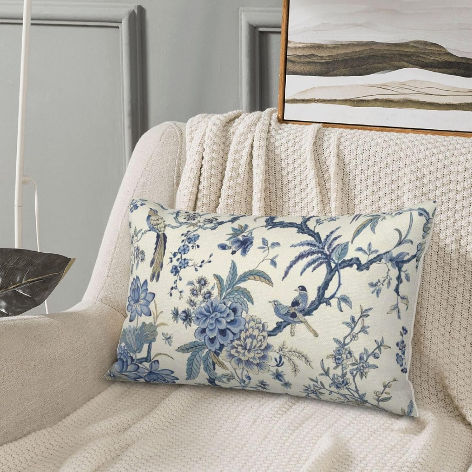 - 【Spring Pillow Covers】 Our Chinoiserie floral throw pillow covers 12x20 inch are made of excellent breathable polyester cotton fabric. The blue and white floral decorative pillow covers is durable, soft and skin-friendly. The plant outdoor pillow covers adopt exquisite edging technology and four sides of our floral pillow covers are sewn firmly, which is not easy to open the line.