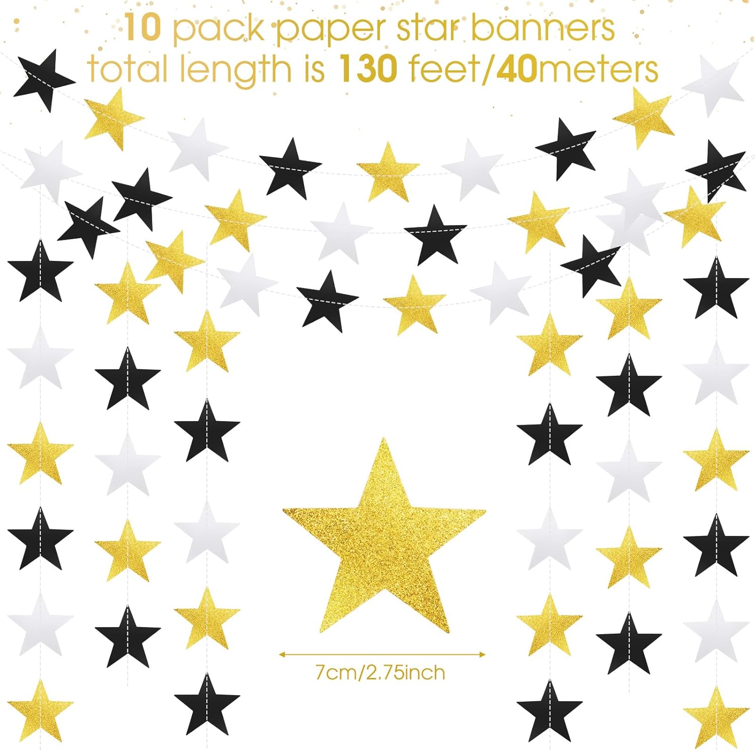 - Extensive Decoration Set: This package contains 10 separate star garland strands; Each strand extends to a length of 13 feet/ 4 meters, providing a total decorative length of 130 feet/ 40 meters; The individual paper stars measure 2.75 inches/ 7 cm across; This substantial quantity allows for comprehensive coverage and creative arrangements, meeting the demands of various party and event decoration projects