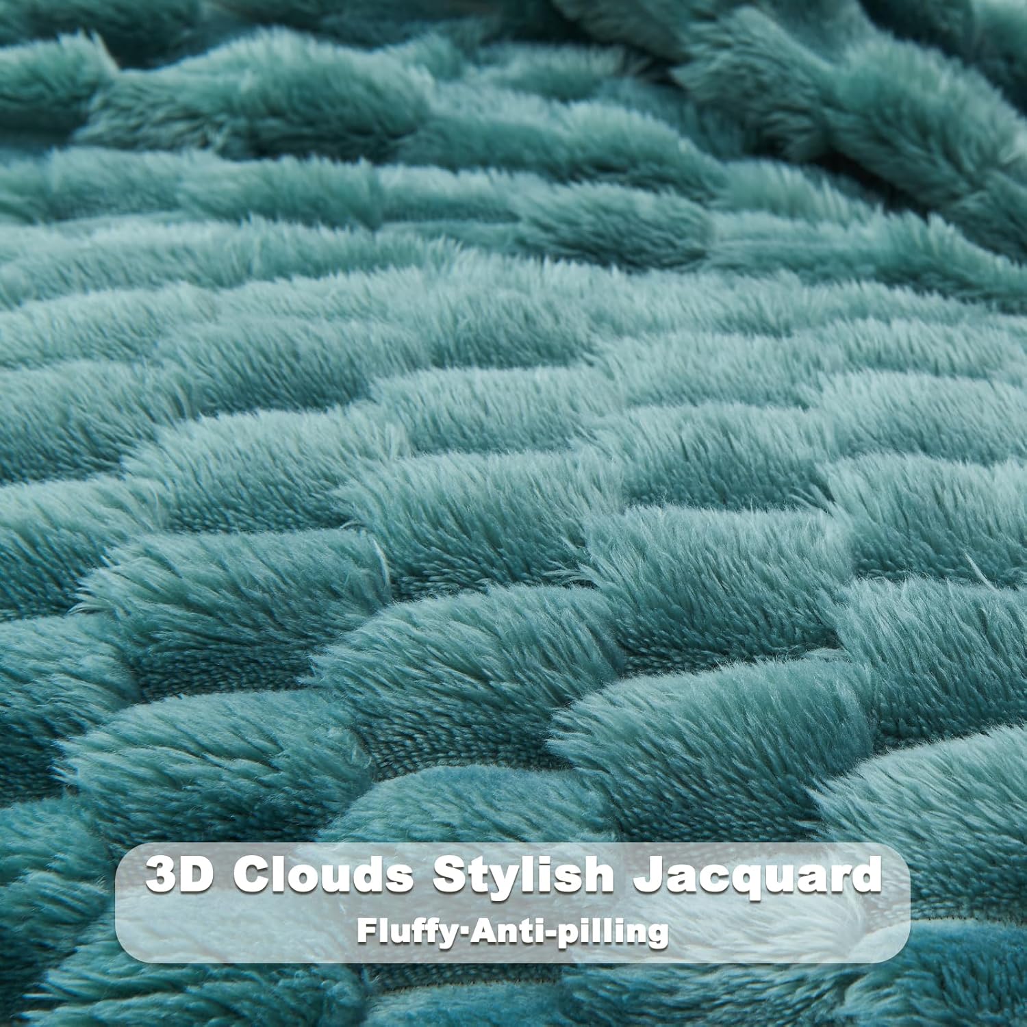 NEWCOSPLAY Super Soft King Blanket Light Teal Premium Silky Flannel Fleece 3D Clouds Stylish Jacquard Lightweight Bed Blanket All Season Use 350GSM (Light Teal, King(90"x110"))
