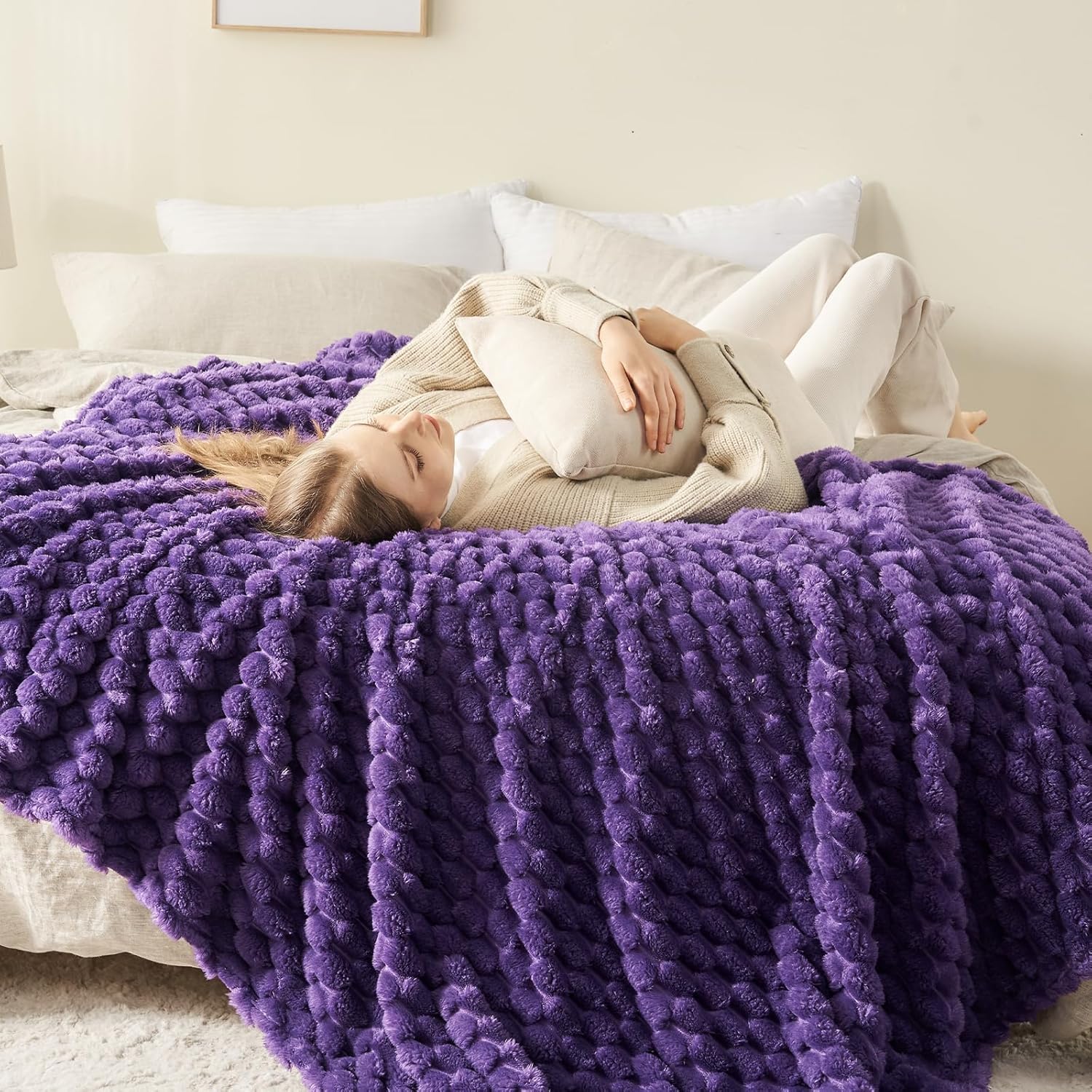 NEWCOSPLAY Super Soft King Blanket Purple Premium Silky Flannel Fleece 3D Clouds Stylish Jacquard Lightweight Bed Blanket All Season Use 350GSM (Purple, King(90"x110"))