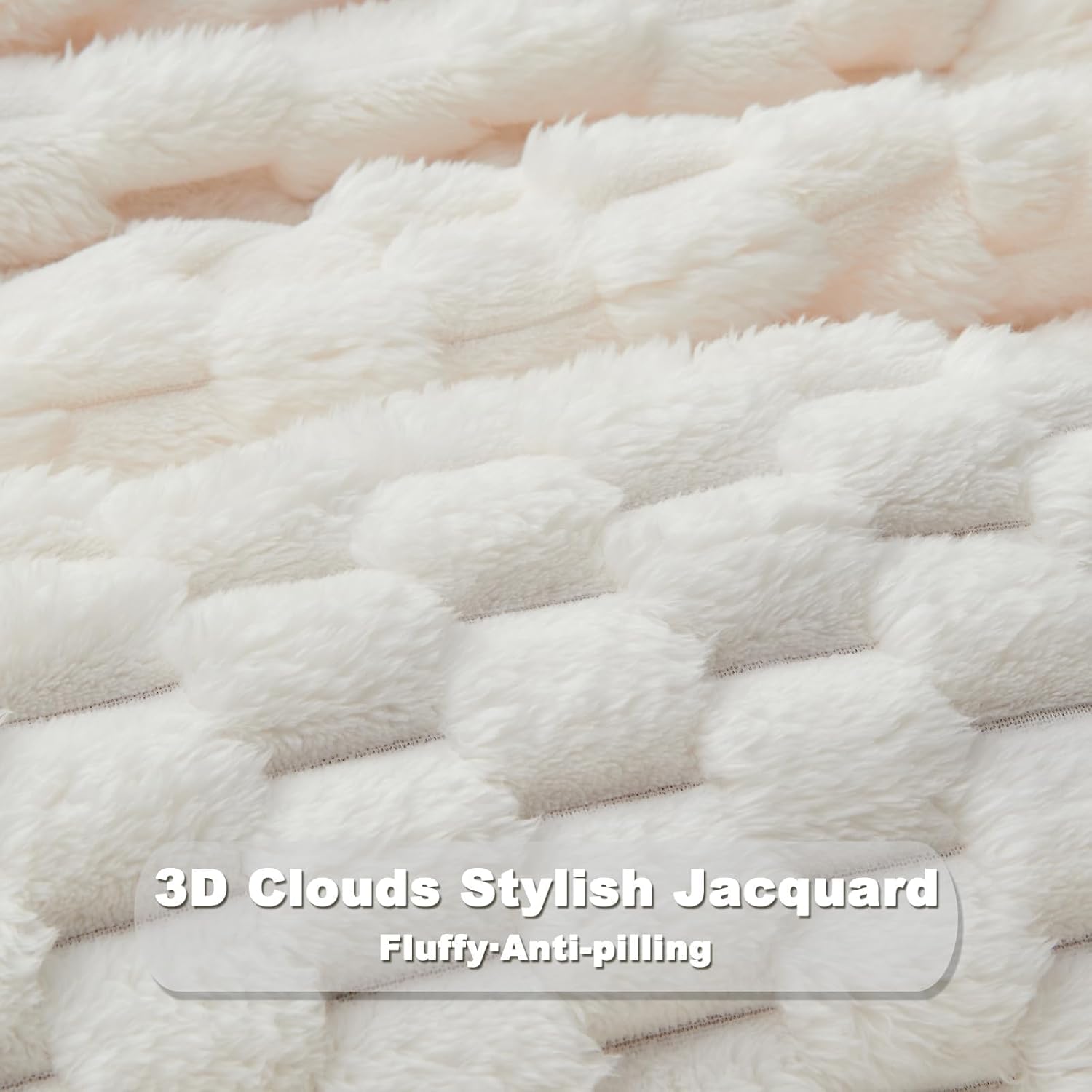 NEWCOSPLAY Super Soft King Blanket Ivory Premium Silky Flannel Fleece 3D Clouds Stylish Jacquard Lightweight Bed Blanket All Season Use 350GSM (Ivory, King(90"x110"))