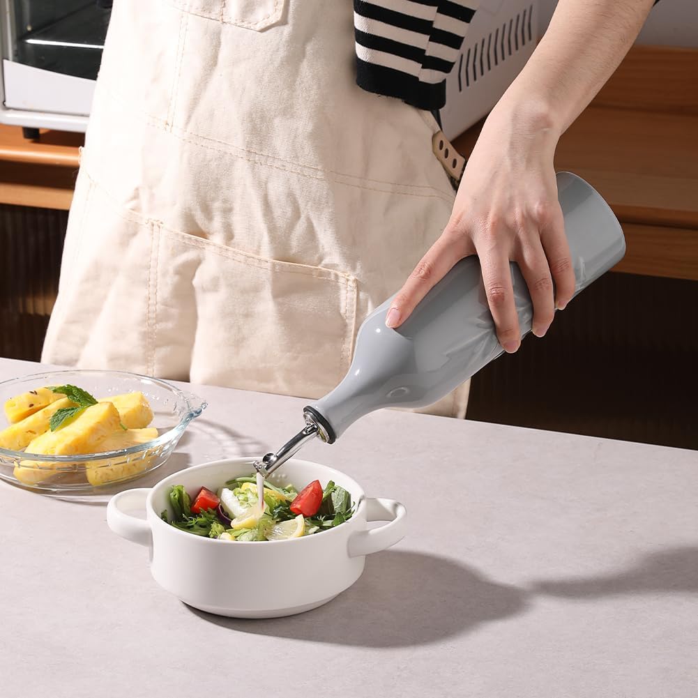 Sweejar Large Ceramic Olive Oil Dispenser Bottle, 24 Oz Relief Opaque Oil Cruet Protects Oil To Reduce Oxidation, Storage Vinegar, Soy Sauce, Coffee Syrup, Liquids, Set of 1 (Gray)