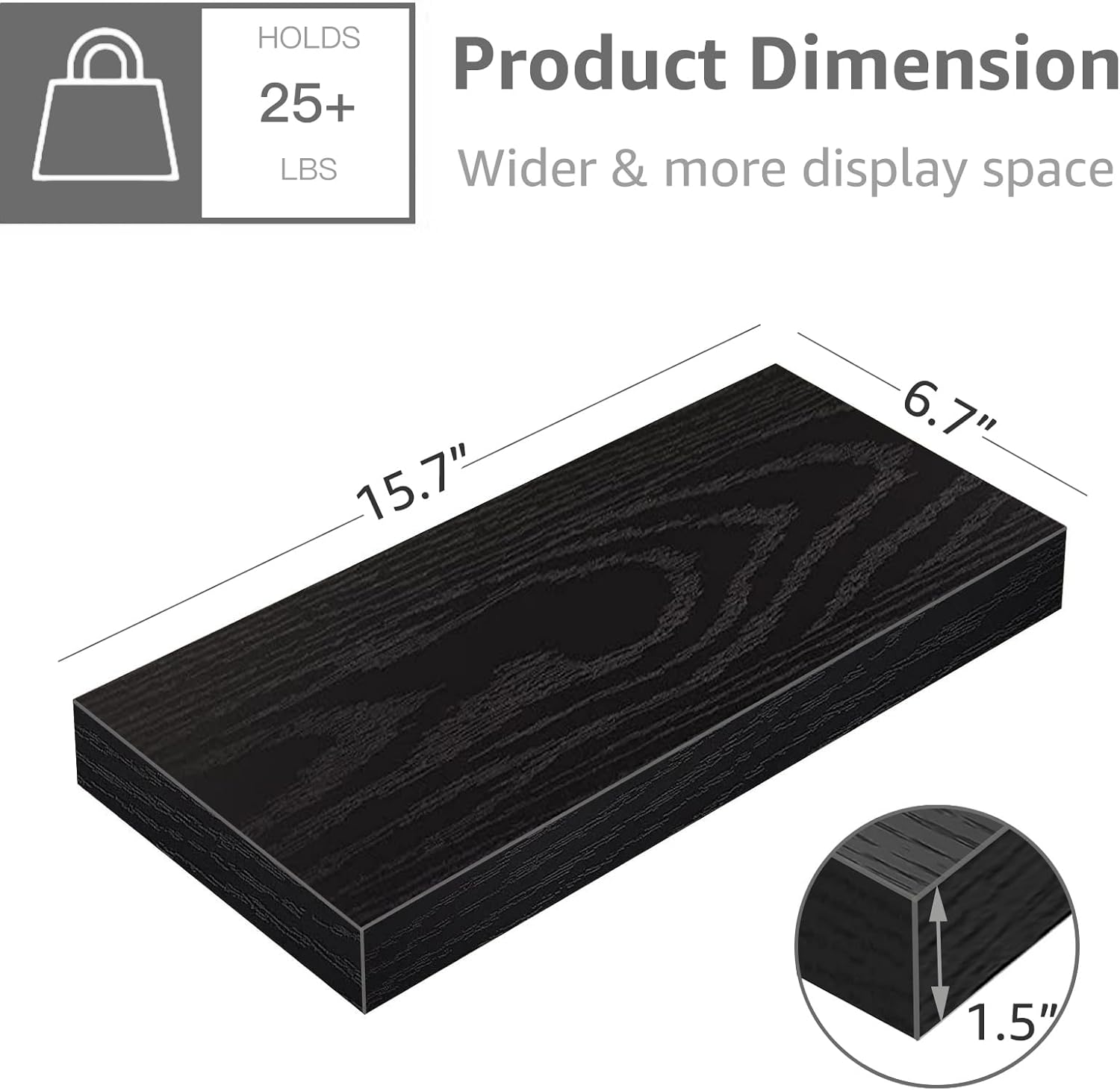 - More Depth: 6.7"D x 15.7"W x 1.5"H. 6.7" depth suitable for books, basket, toilet paper or bath towels. Contains 1 shelf perfect for small space