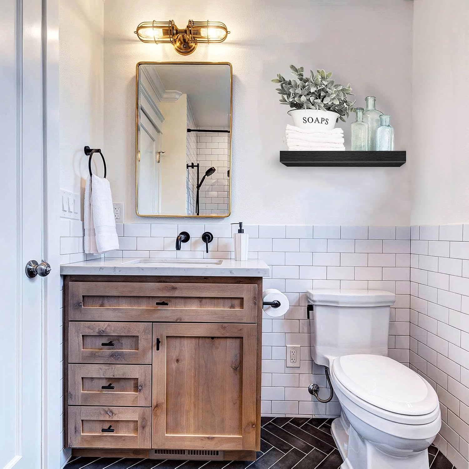 - Invisible Bracket: Farmhouse vibe fill in empty wall space above a desk, fireplace, entryway, vanity, between windows. Put succulent plants, collectibles small items