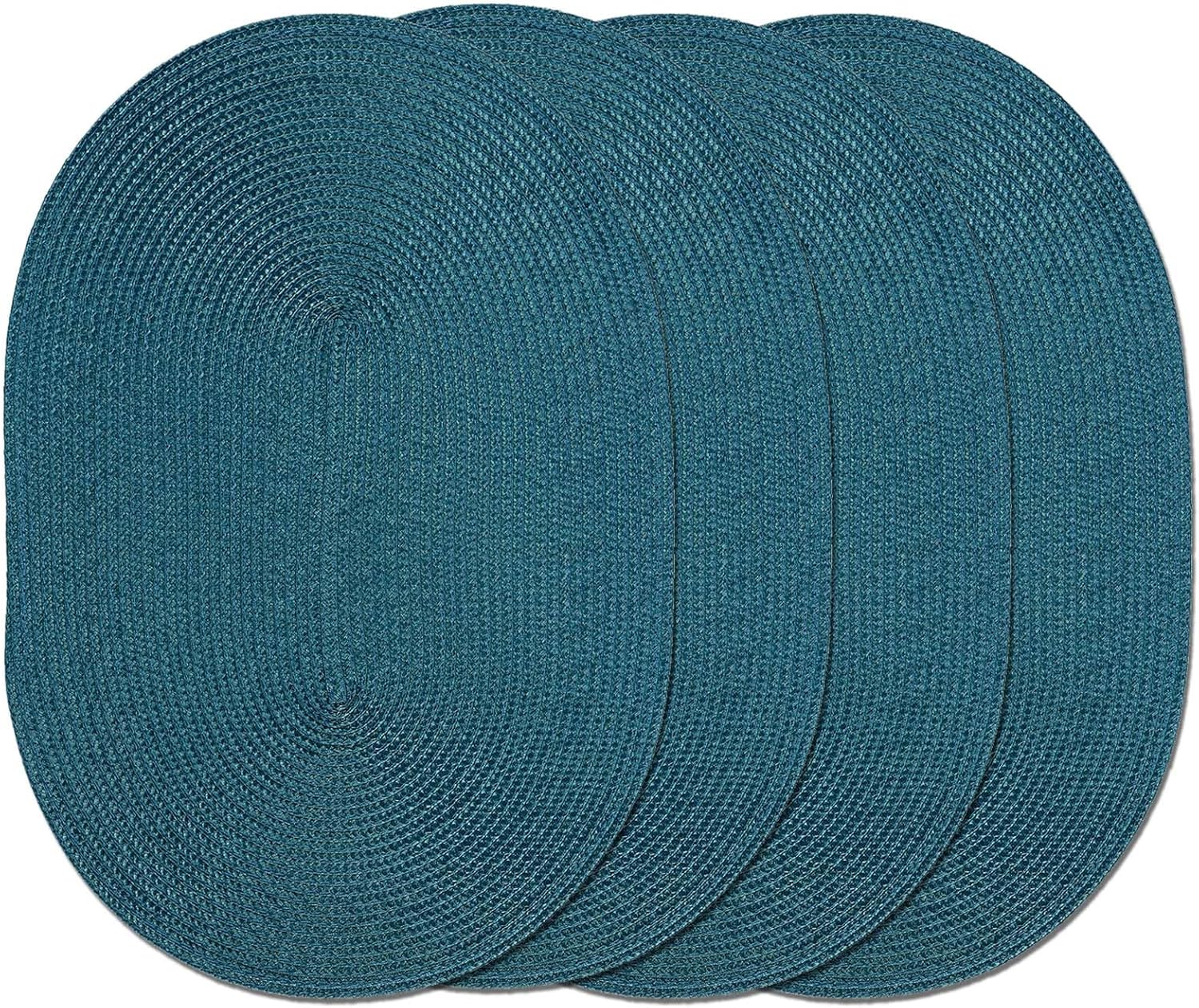 AHHFSMEI Placemats Set of 4 for Dining Table Washable Woven Vinyl Non-Slip 18x12 inches Placemat Heat-Resistant Durable Table Mats for Dining Table Easy to Clean (Oval Blue, 4)