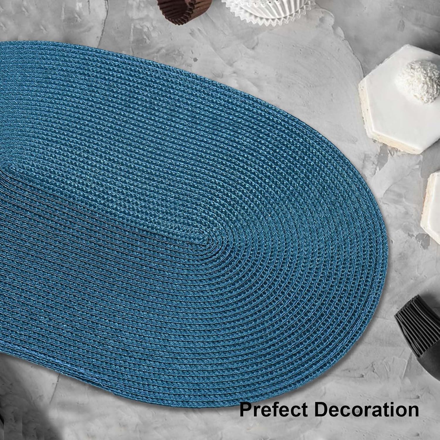 AHHFSMEI Placemats Set of 8 for Dining Table Washable Woven Vinyl Non-Slip 18x12 inches Placemat Heat-Resistant Durable Table Mats for Dining Table Easy to Clean (Oval Blue, 8)