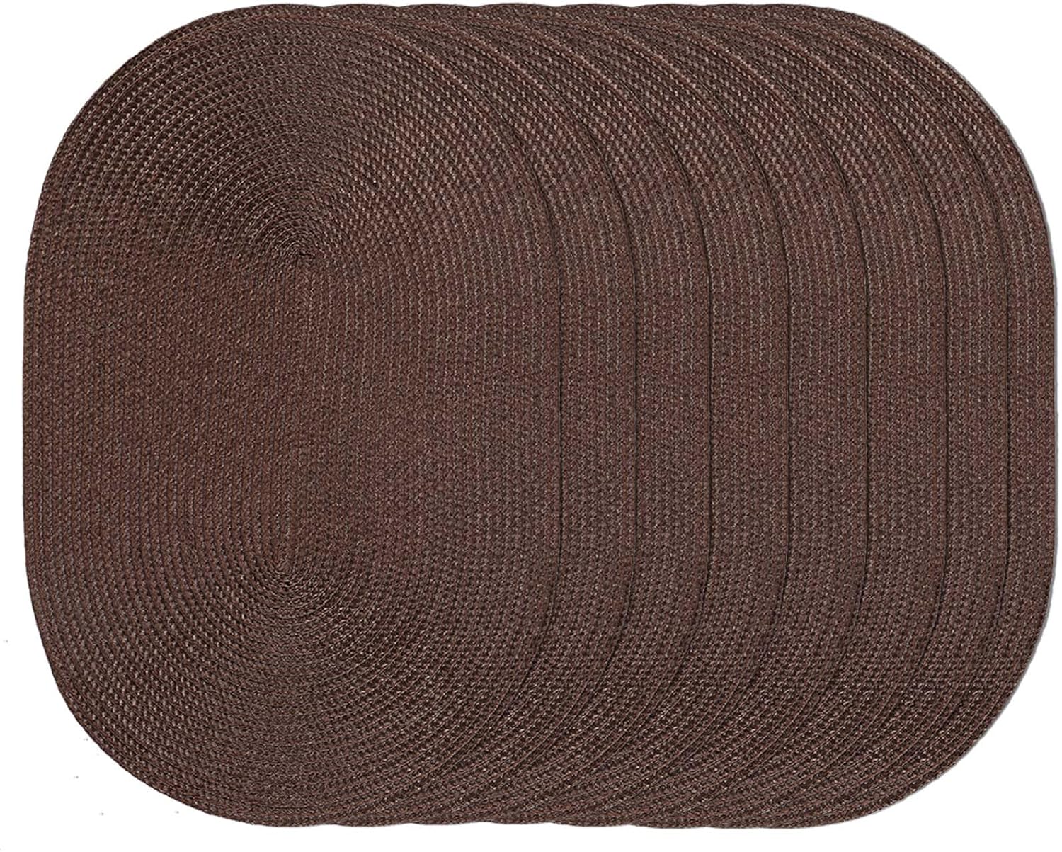 AHHFSMEI Placemats Set of 8 for Dining Table Washable Woven Vinyl Non-Slip 18x12 inches Placemat Heat-Resistant Durable Table Mats for Dining Table Easy to Clean (Oval Brown, 8)