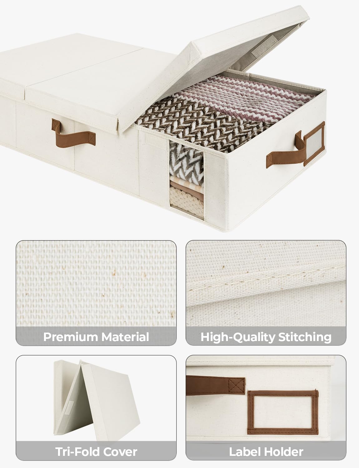 - Foldable: The lid of this underbed organizer can be folded into 3 parts, so the contents can be accessed from both sides for convenience. These storage boxes can also be folded and stored easily when not in use.