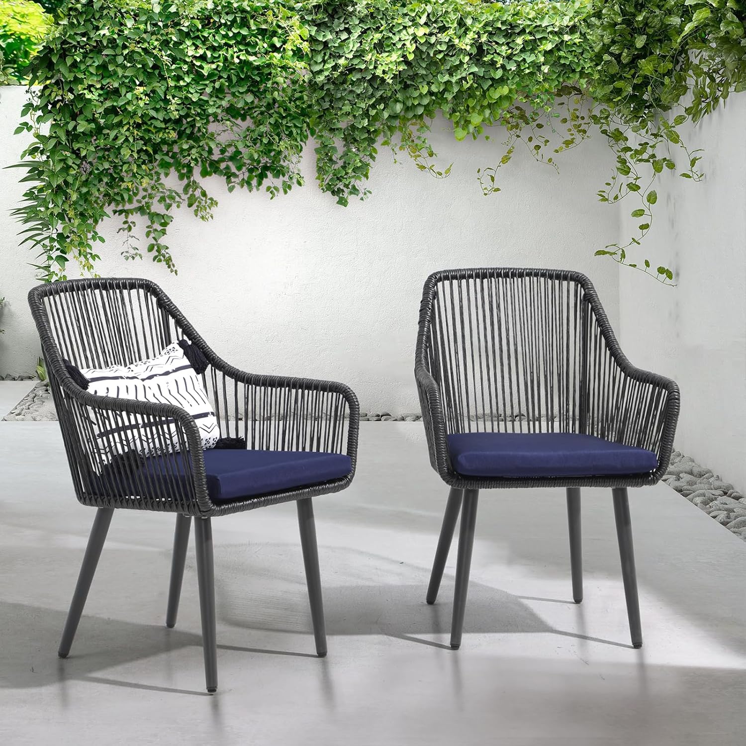 - ☕[Supremely Comfort with Bonus Covers]: The subtle curved armrest and large back of our outdoor chairs are designed to hug for total comfort. Includes 2 blue cushions + 2 bonus beige cushion covers – easily swap to match any outdoor decor! Removable high-resilience padding stays plush while being breeze to clean. (Upgrade available from July 25th, 2025)