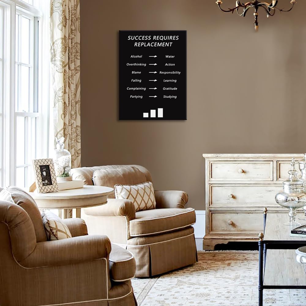 Inspirational Canvas Wall Art Office Decor Success Requires Replacement Poster Motivational Positive Quote Picture Painting Artwork Modern Home Decor Classroom Wooden Framed [18''W x 24''H]